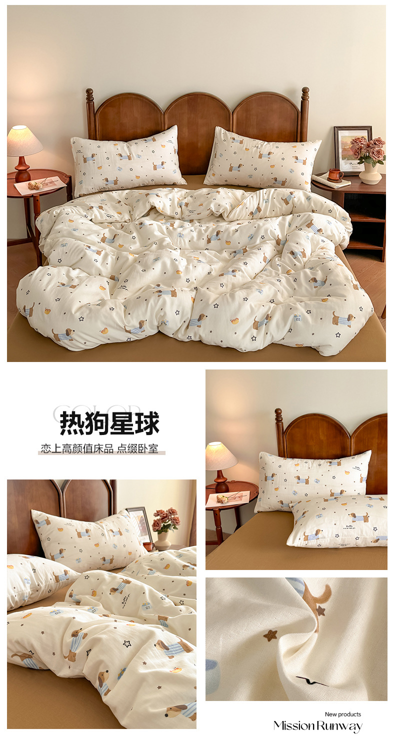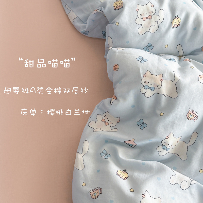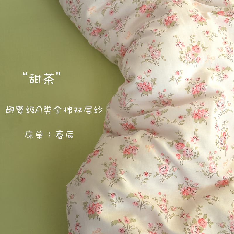 클래스 A 면화 엄마와 아기 더블 레이어 원사 4 피스 세트 목가적 스타일 100 면 3 피스 세트 싱글 피스 퀼트 커버 리틀 레드 북 폭발스토어 가기