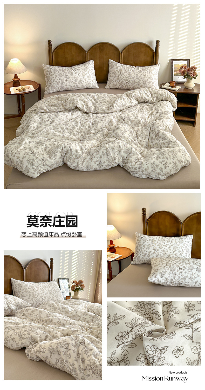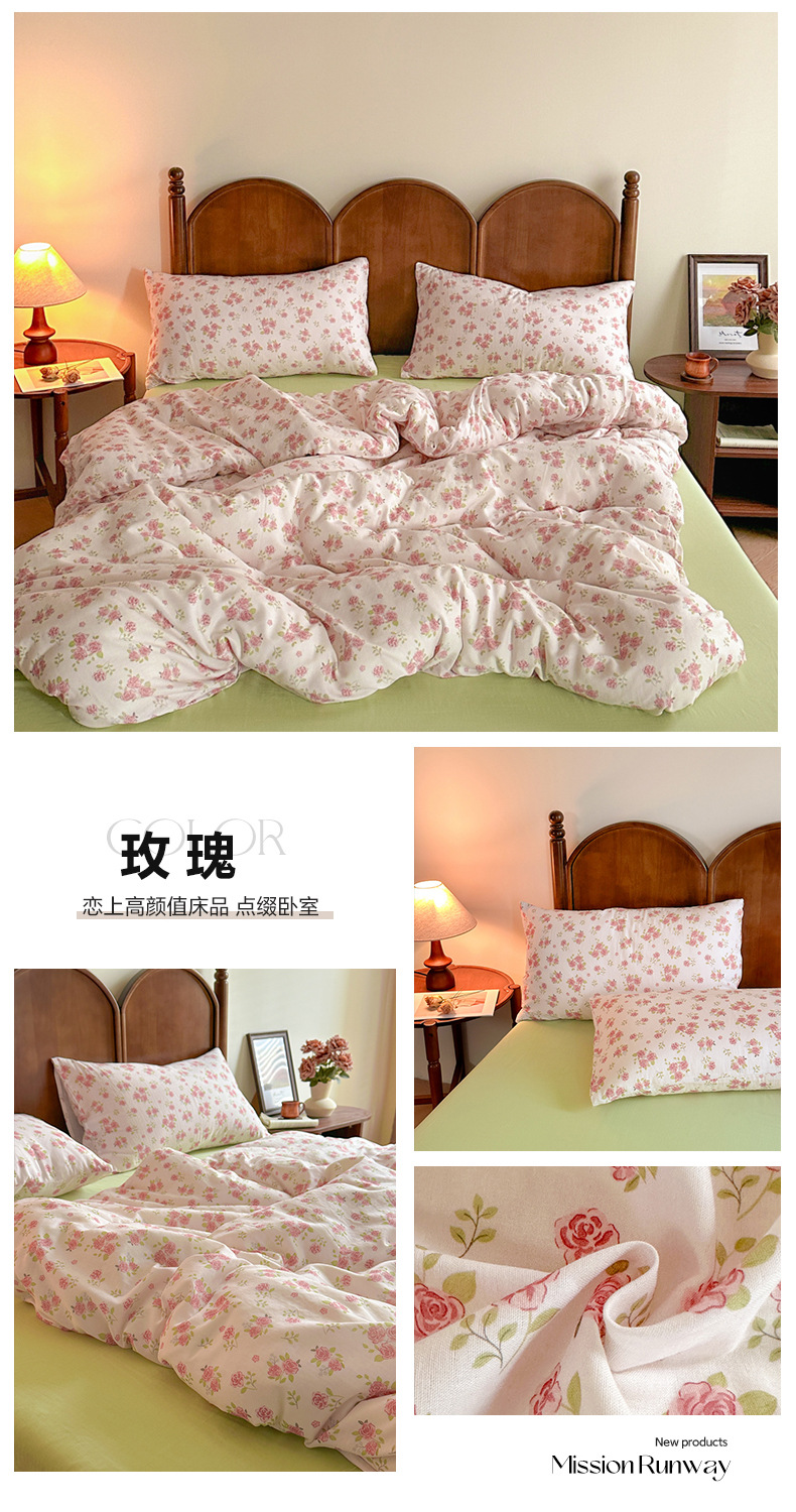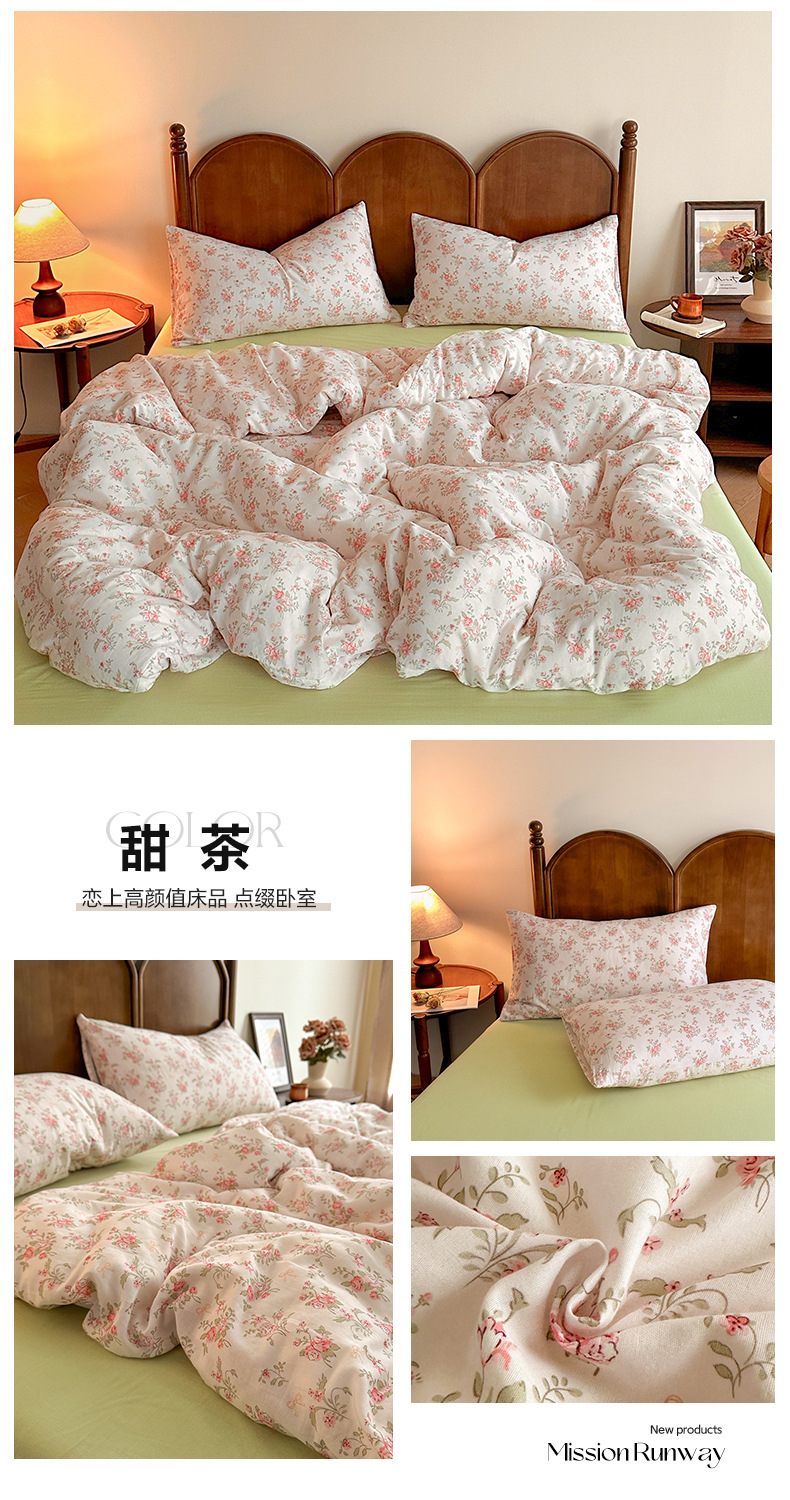 클래스 A 면화 엄마와 아기 더블 레이어 원사 4 피스 세트 목가적 스타일 100 면 3 피스 세트 싱글 피스 퀼트 커버 리틀 레드 북 폭발