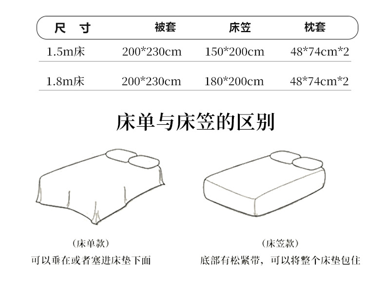 • 1.8m 침대 시트 4종 세트/이불커버 200.230 포함