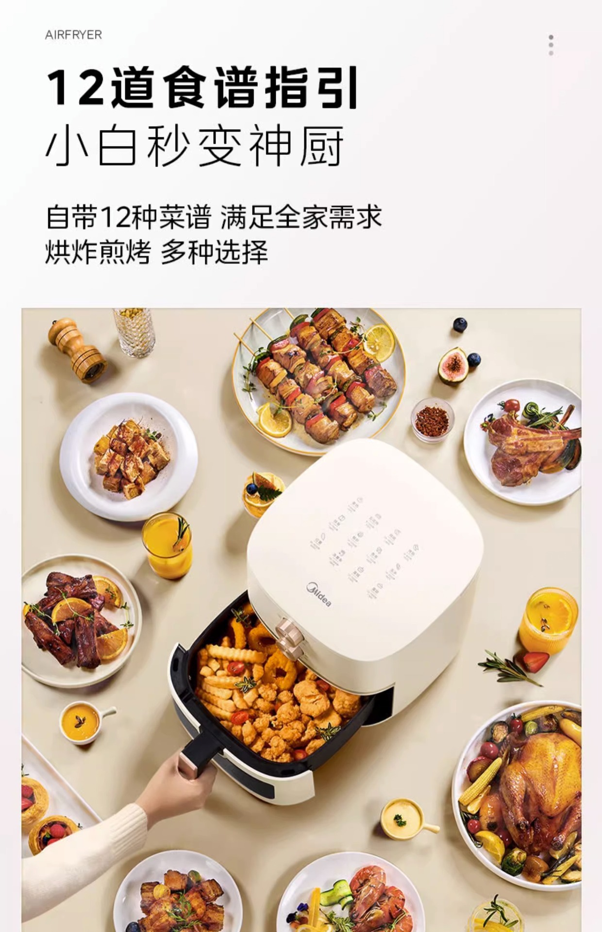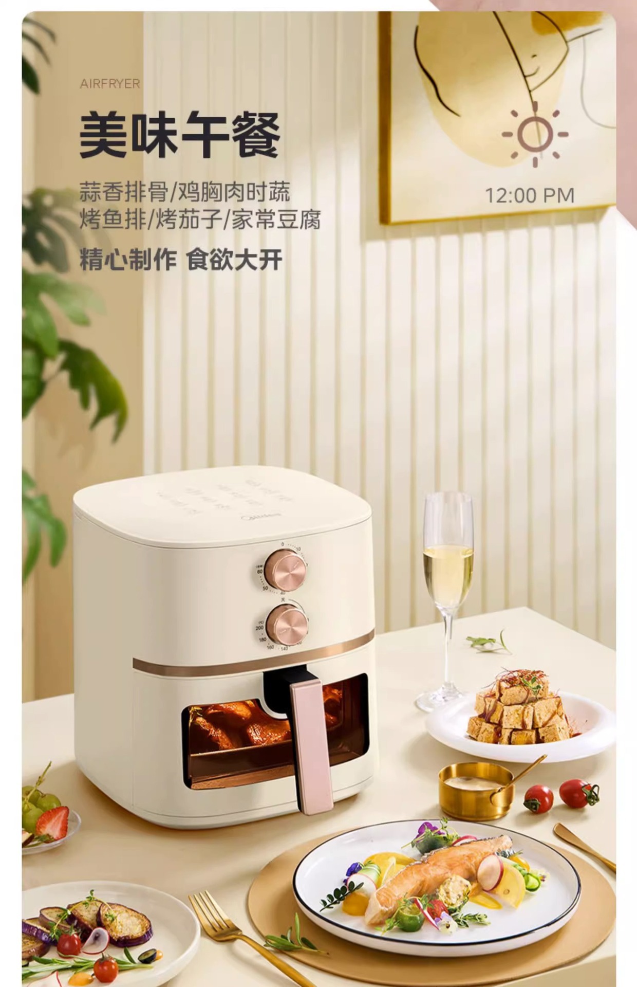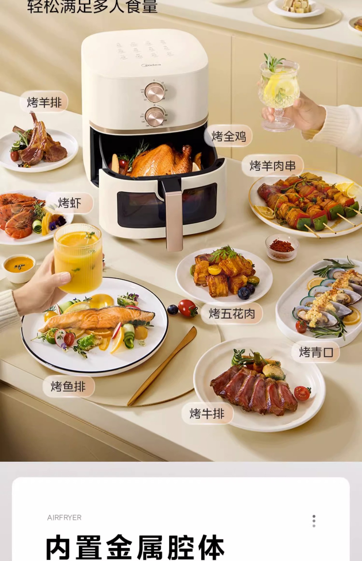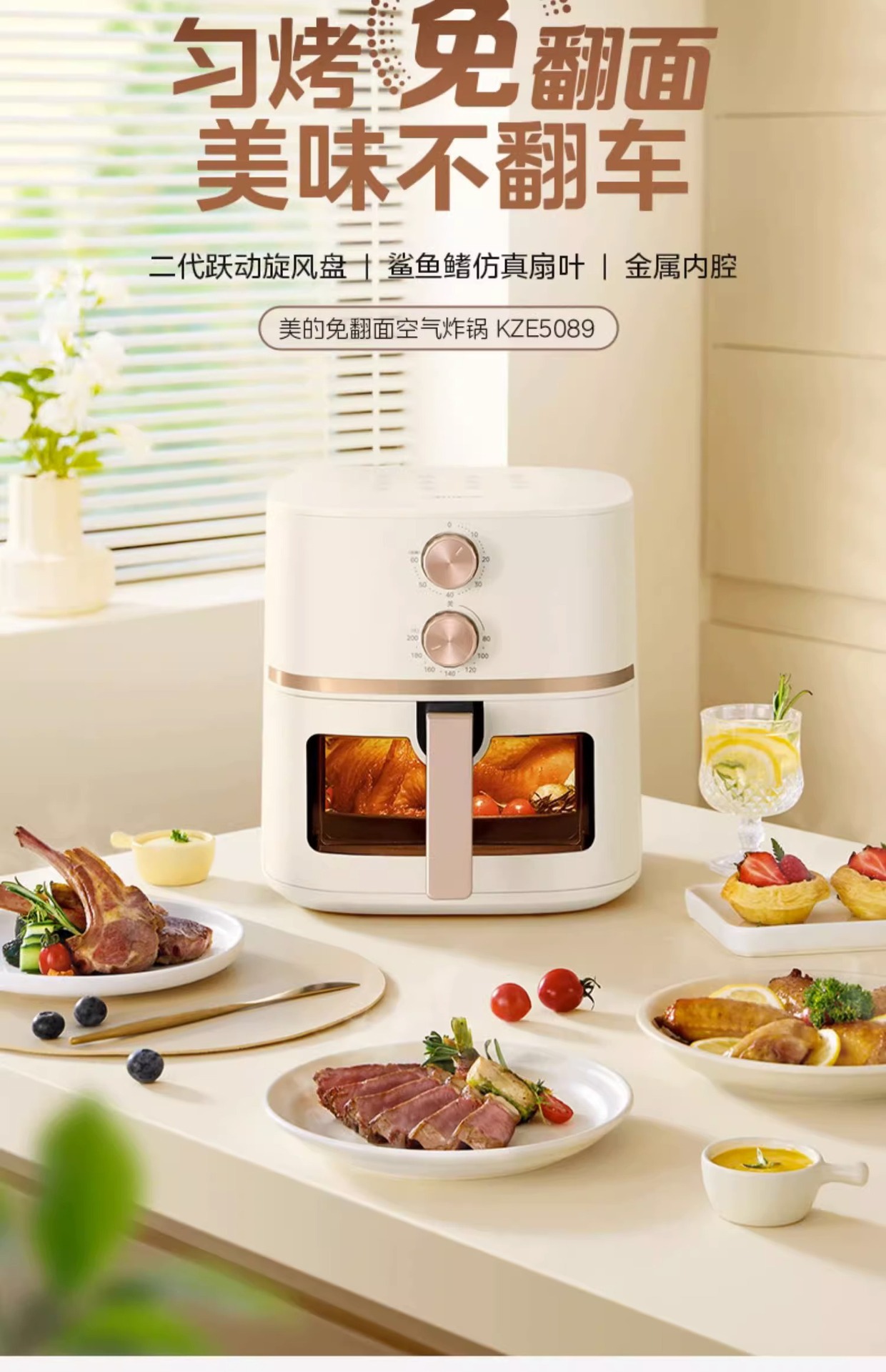 Midea MF-KZE5089 에어 프라이어 가정용 새로운 지능형 대용량 비주얼 턴프리 다기능스토어 가기