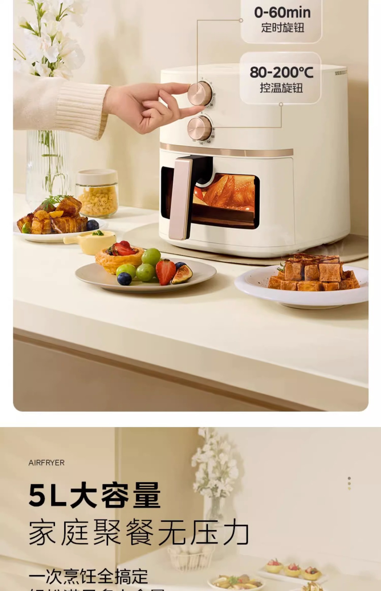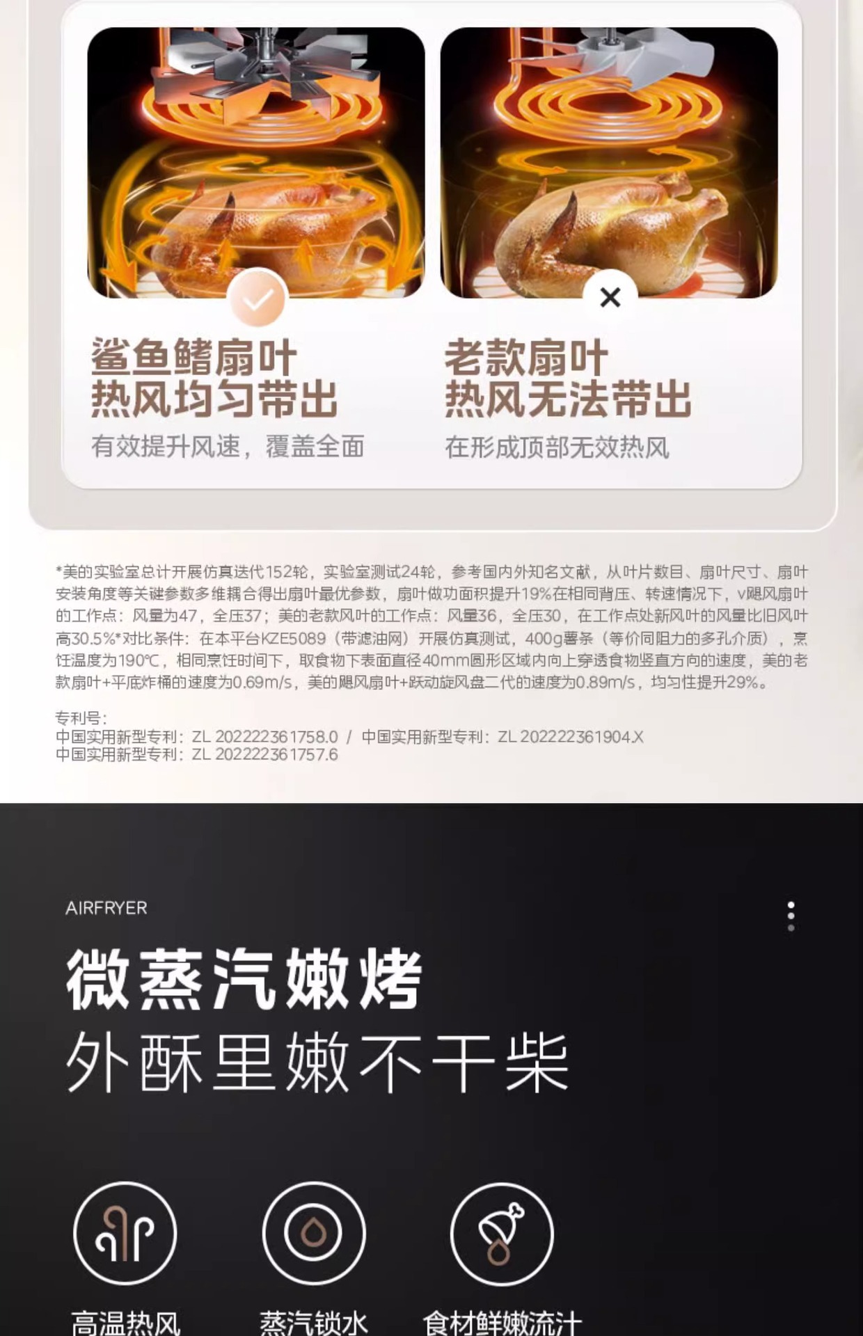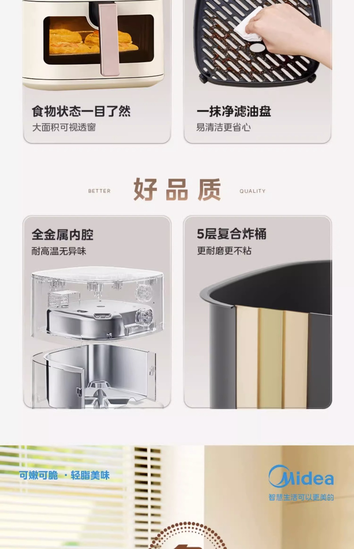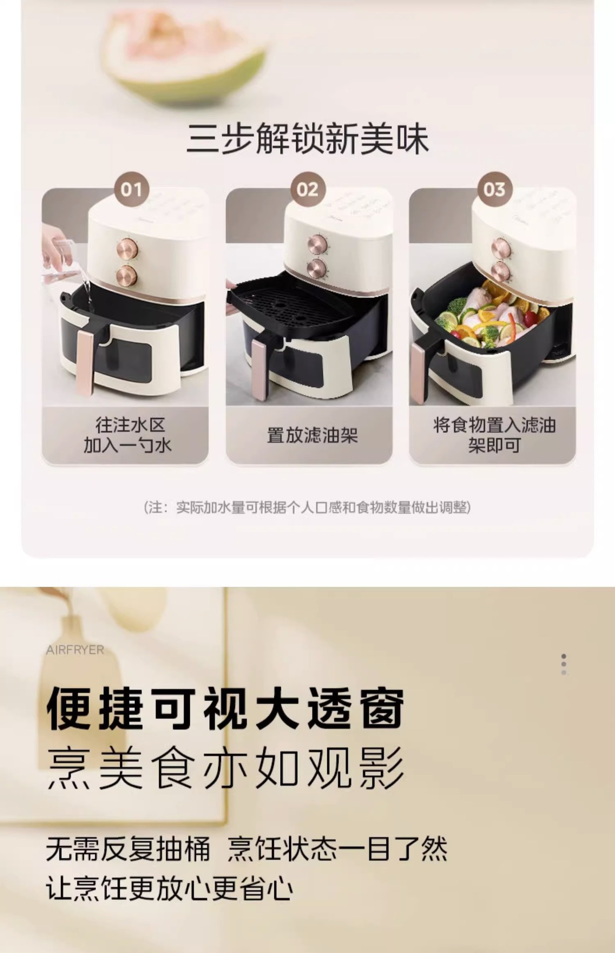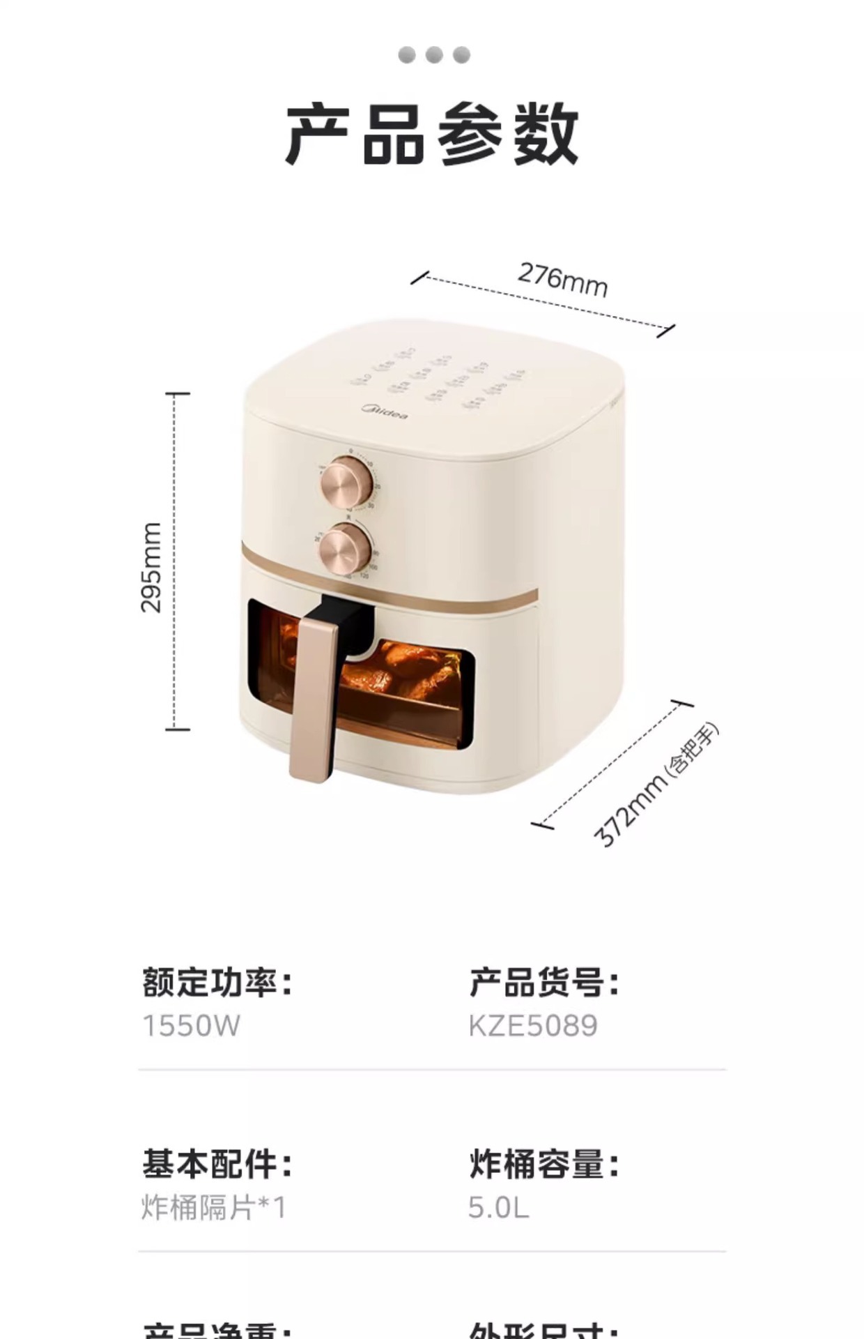 Midea MF-KZE5089 에어 프라이어 가정용 새로운 지능형 대용량 비주얼 턴프리 다기능스토어 가기