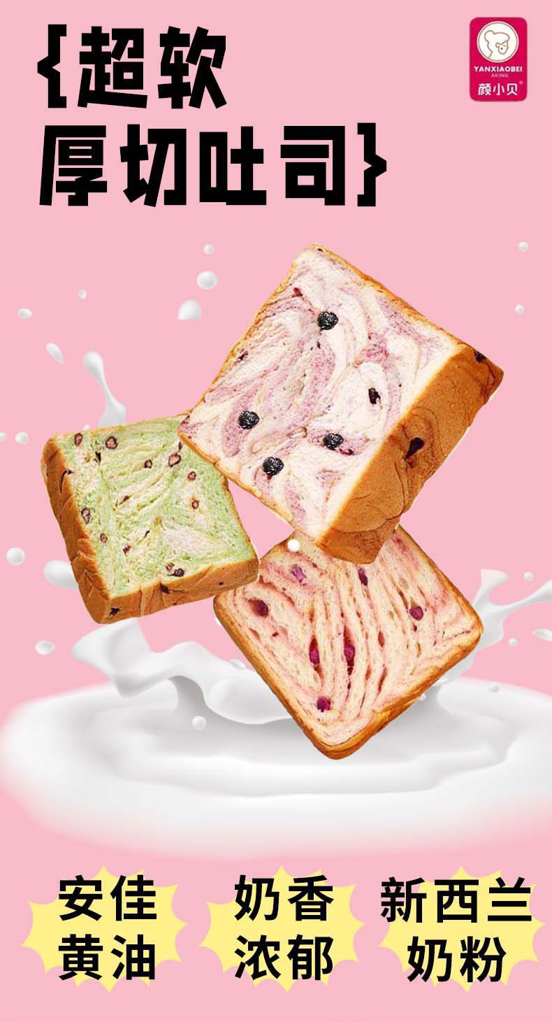 Yan Xiaobei 두꺼운 토스트 빵 슈퍼 부드러운 학생 아침 식사 영양 인터넷 탐욕스러운 패스트 푸드를위한 레저 스낵 식품스토어 가기
