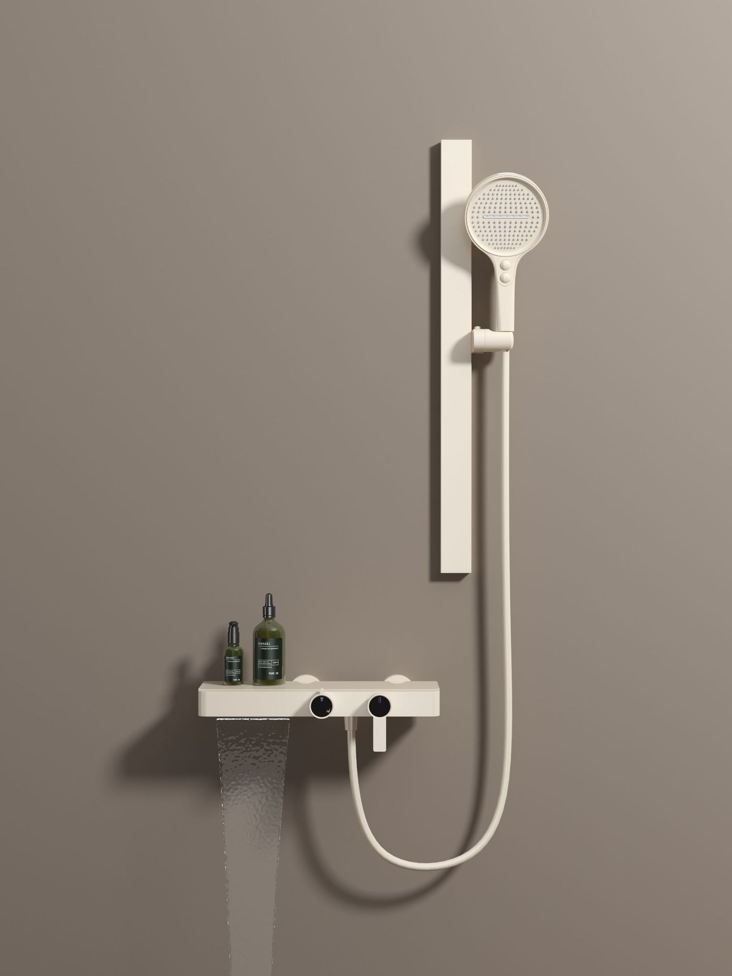 총 회색 우유 흰색 모든 구리 폭포 가압 샤워 세트 가정용 욕실 비 노즐 화장실 물 혼합 밸브