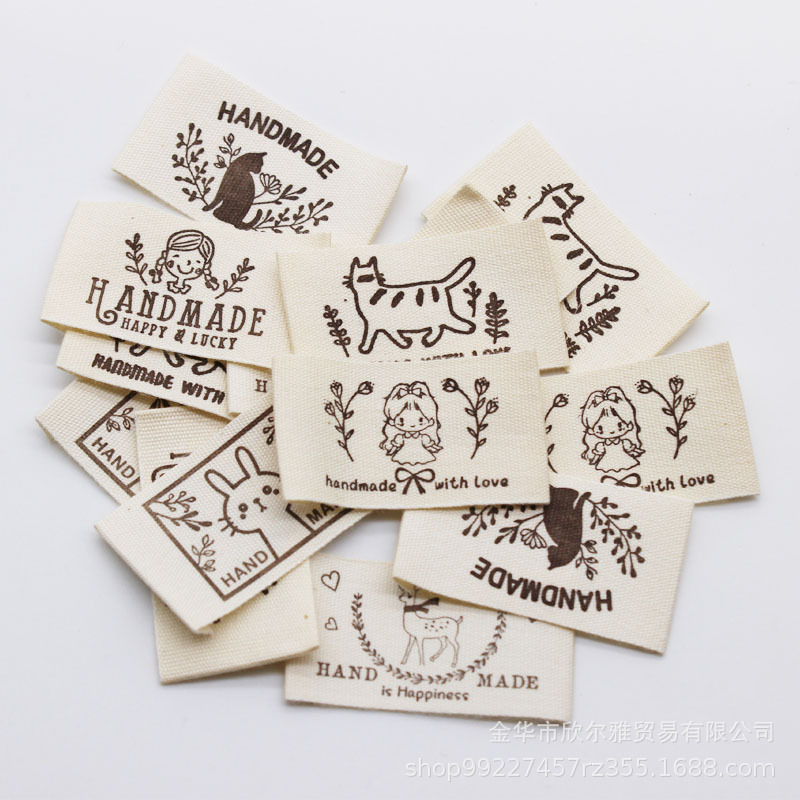 수제 순수 코튼 인쇄 라벨 스팟 부드러운 면 벨트 라벨 상표 아동 의류 DIY 수제 장난감 라벨스토어 가기