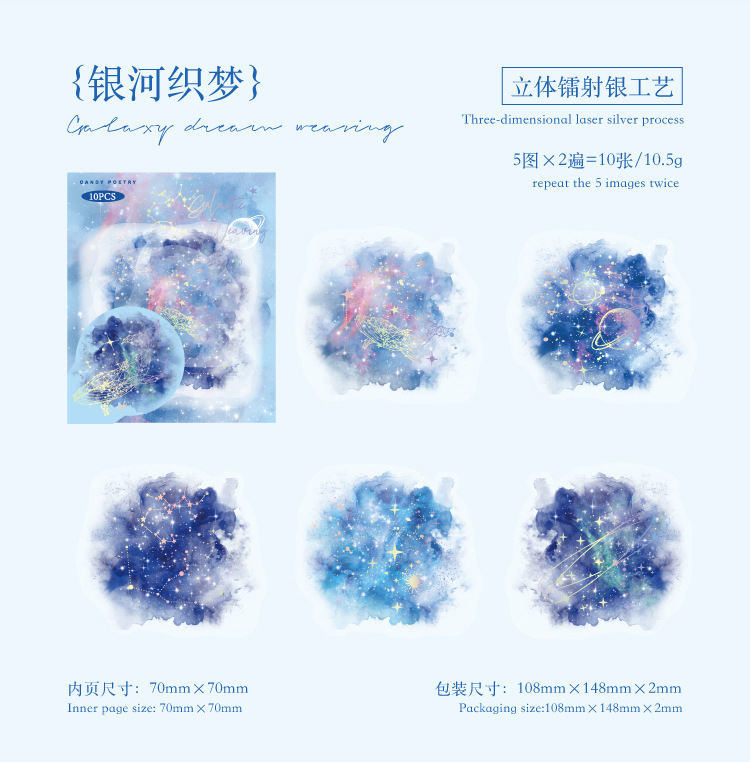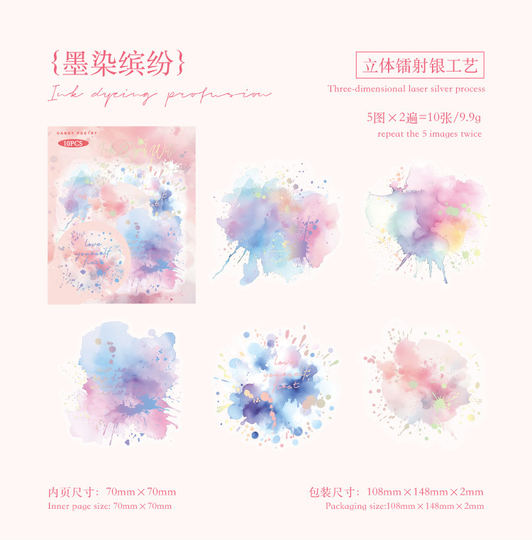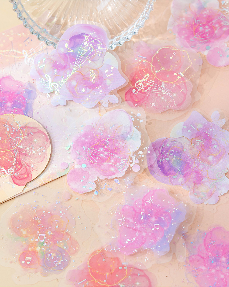 슈가시 PET 입체 레이저 실버 스티커 가방 Ambilight 시리즈 판타지 수채화 헤일로 핸드북 장식 스티커