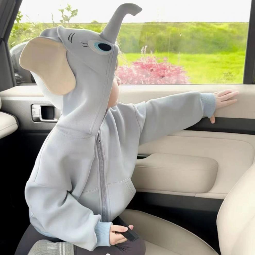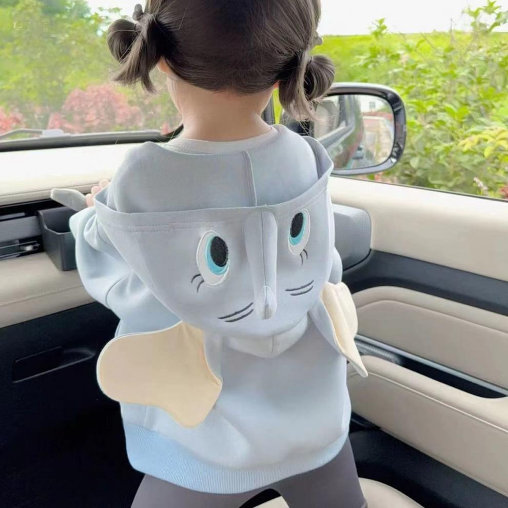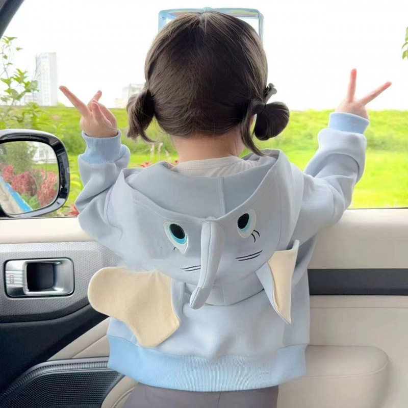여자 한국식 코트 2025 새로운 외국 스타일 어린이 아기 귀여운 입체 아기 코끼리 후드 어린이 기모 스웨터스토어 가기