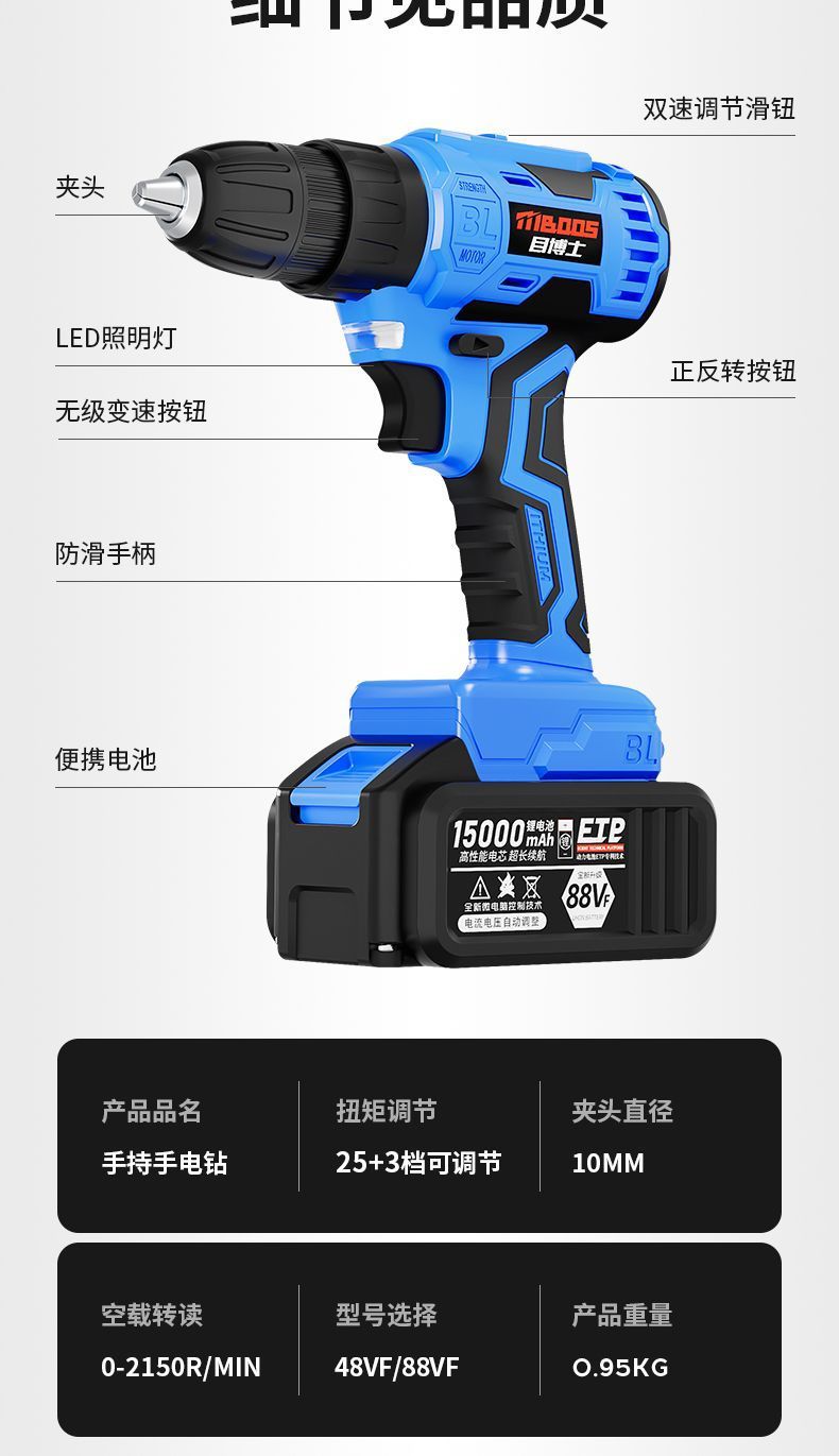 Dr. Mu 브러시리스 리튬 전기 드릴 충전 충격 드릴 가정용 산업용 등급 권총 드릴 전기 드라이버 전기 도구스토어 가기