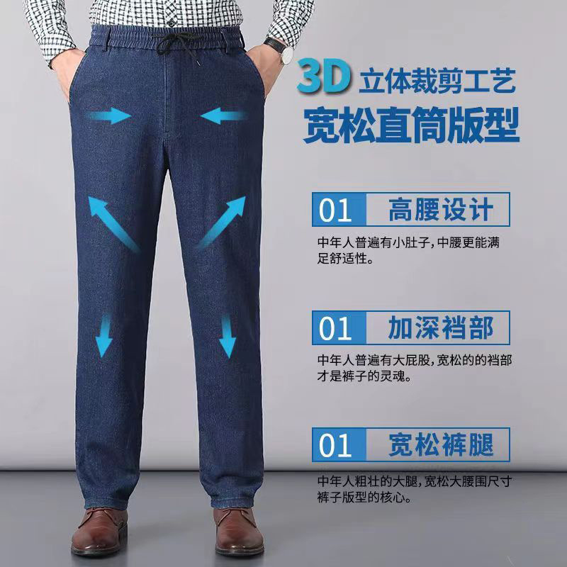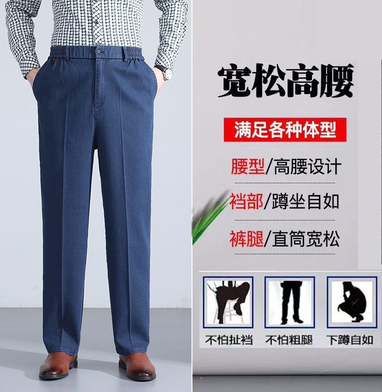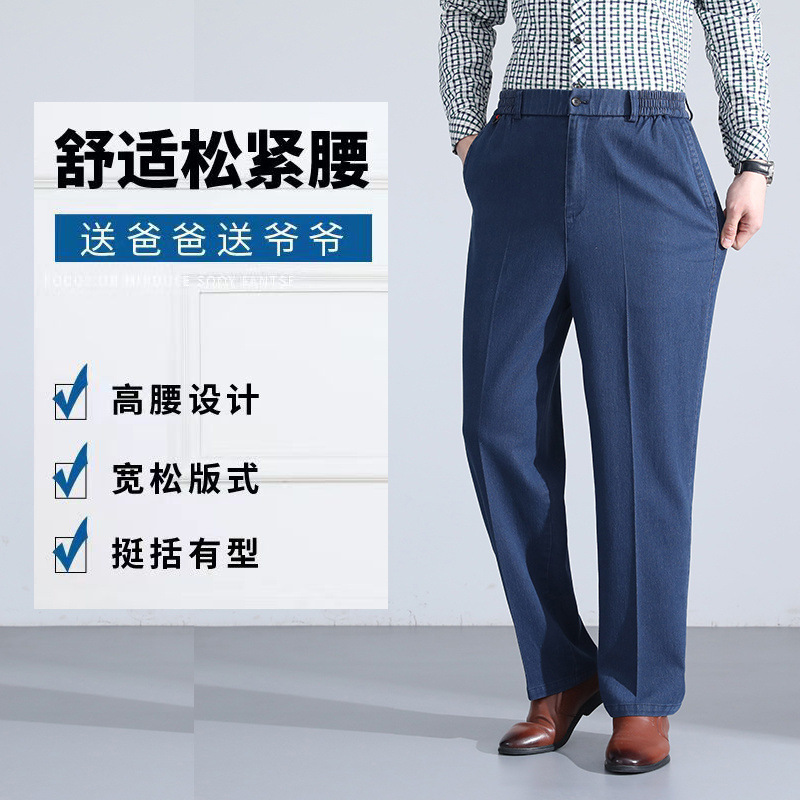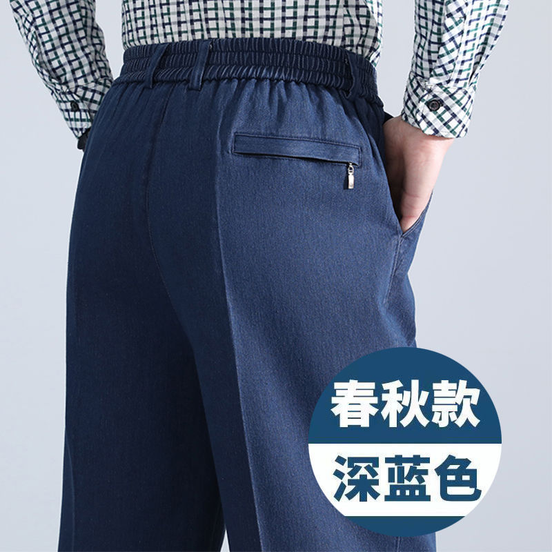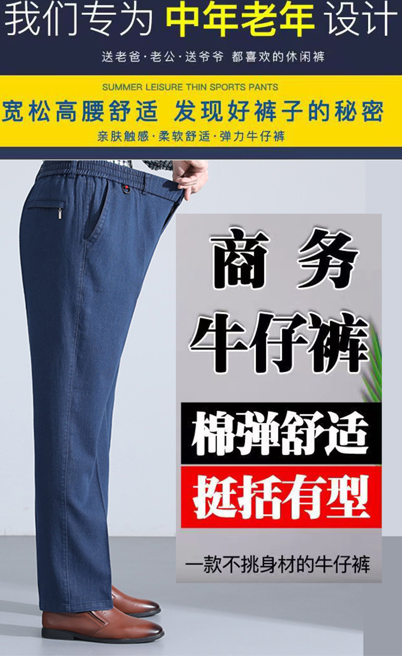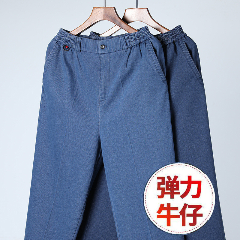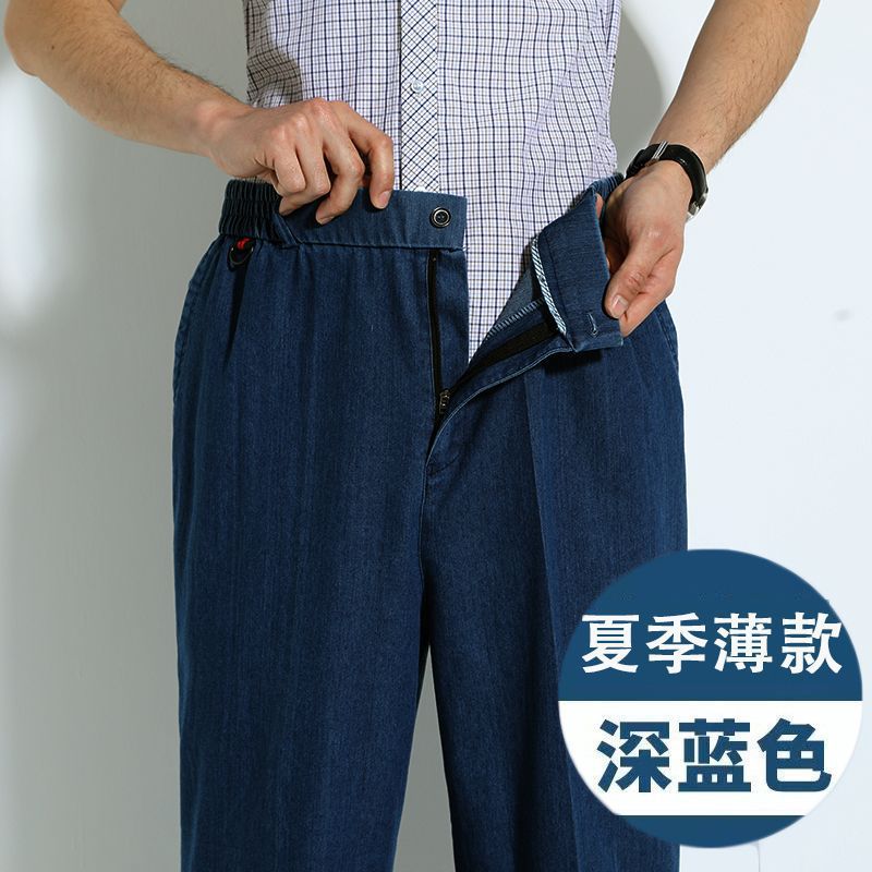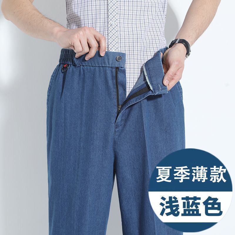 데님 바지 중년 여름 청바지 얇은 탄성 남자 느슨한 아빠 중년 스트레치 스트레이트 바지스토어 가기
