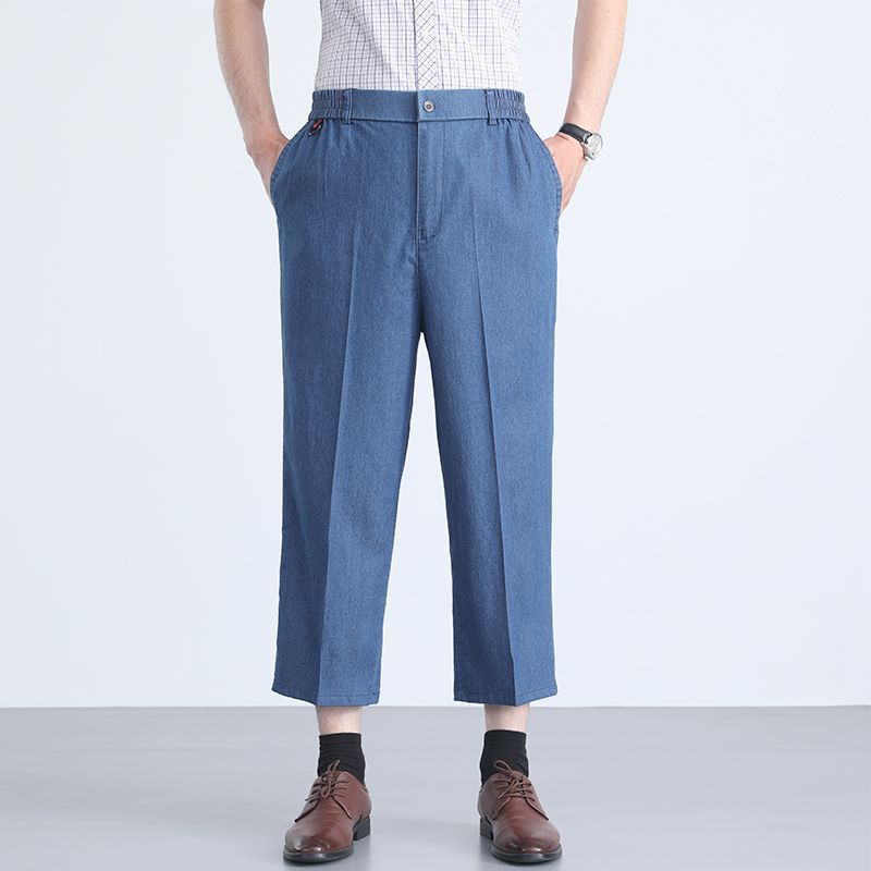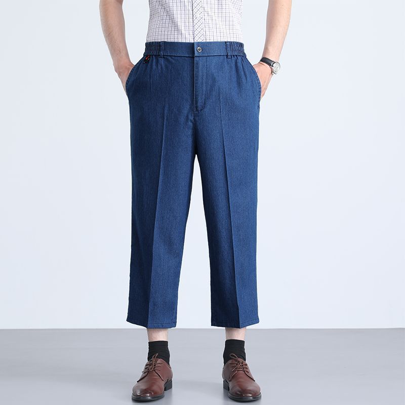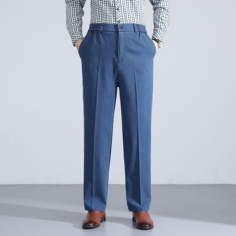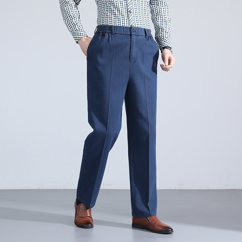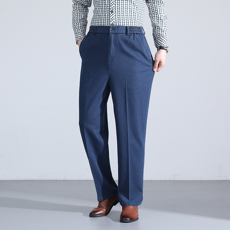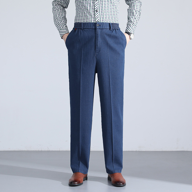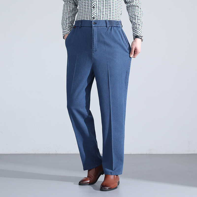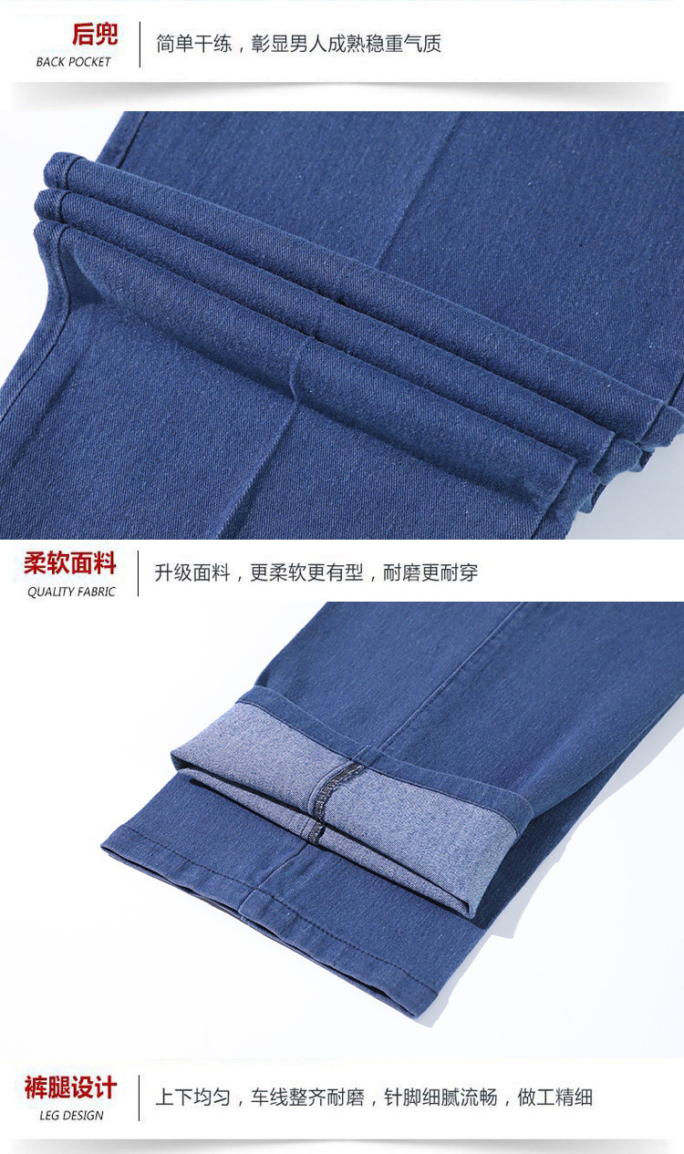 데님 바지 중년 여름 청바지 얇은 탄성 남자 느슨한 아빠 중년 스트레치 스트레이트 바지스토어 가기