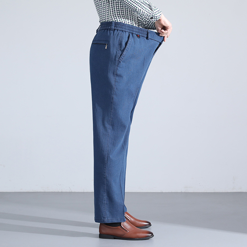 데님 바지 중년 여름 청바지 얇은 탄성 남자 느슨한 아빠 중년 스트레치 스트레이트 바지