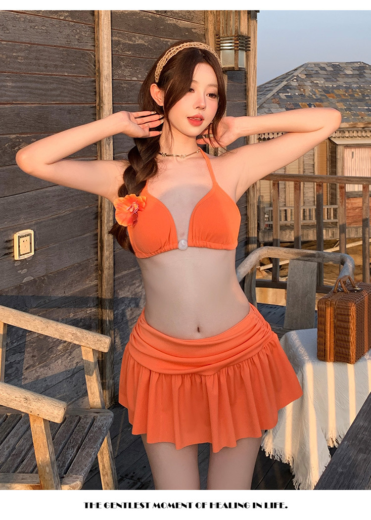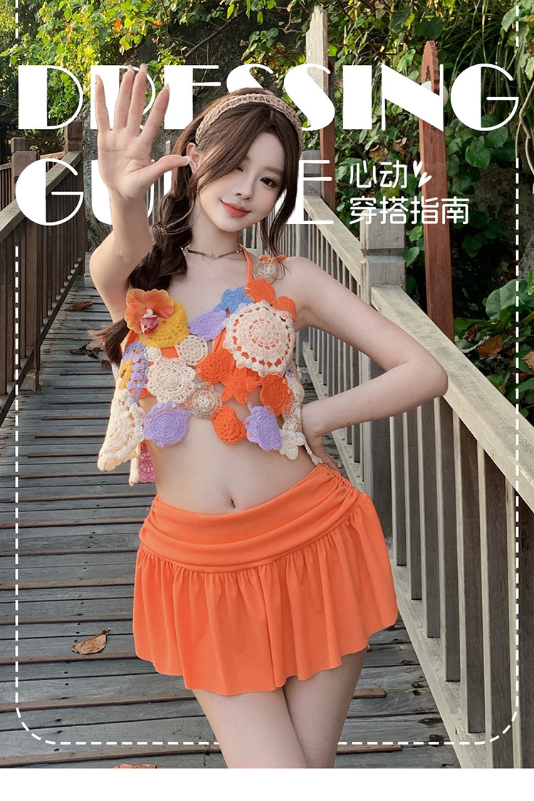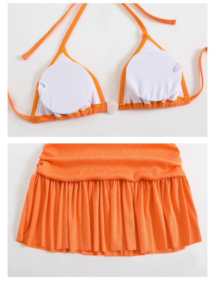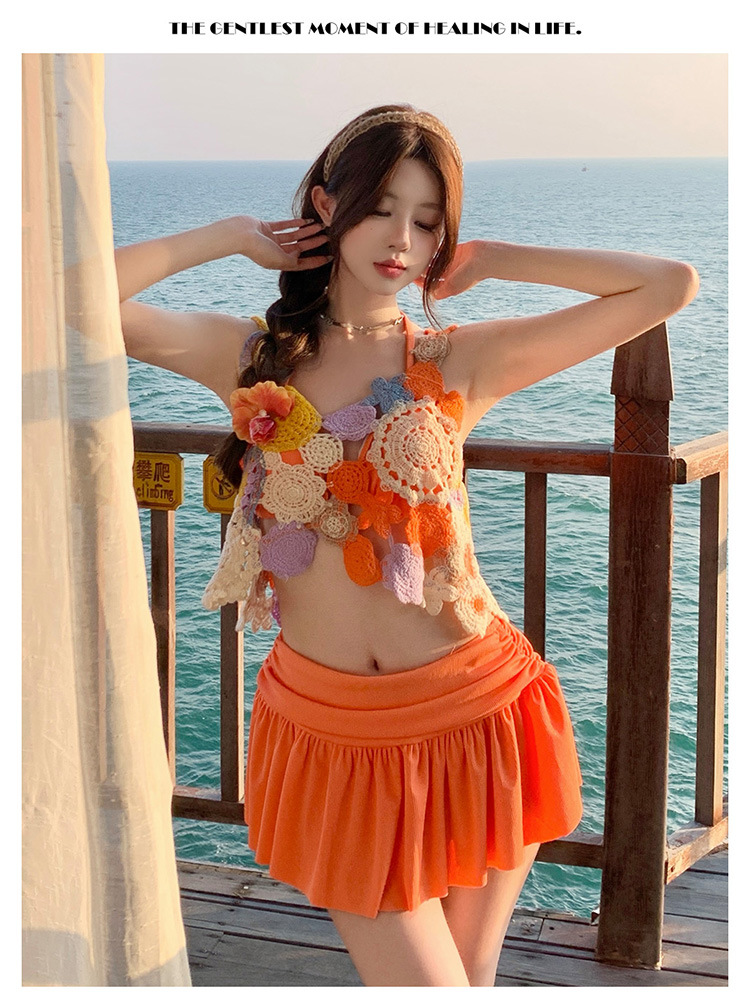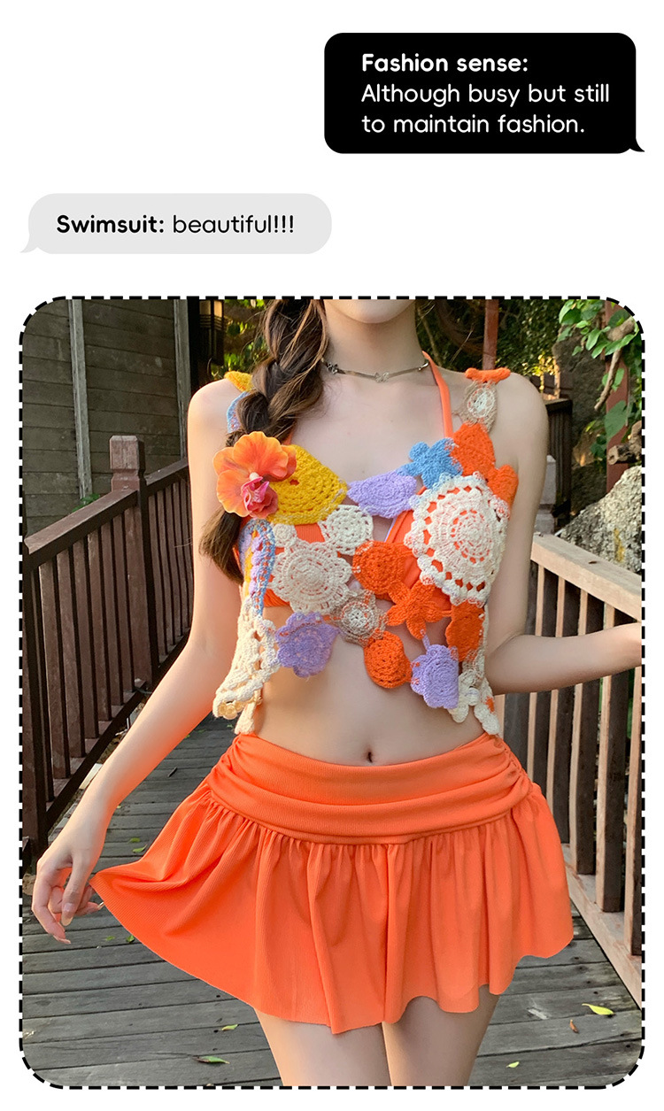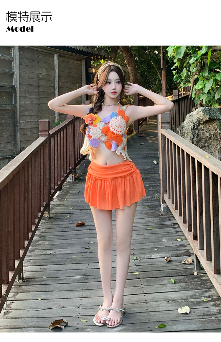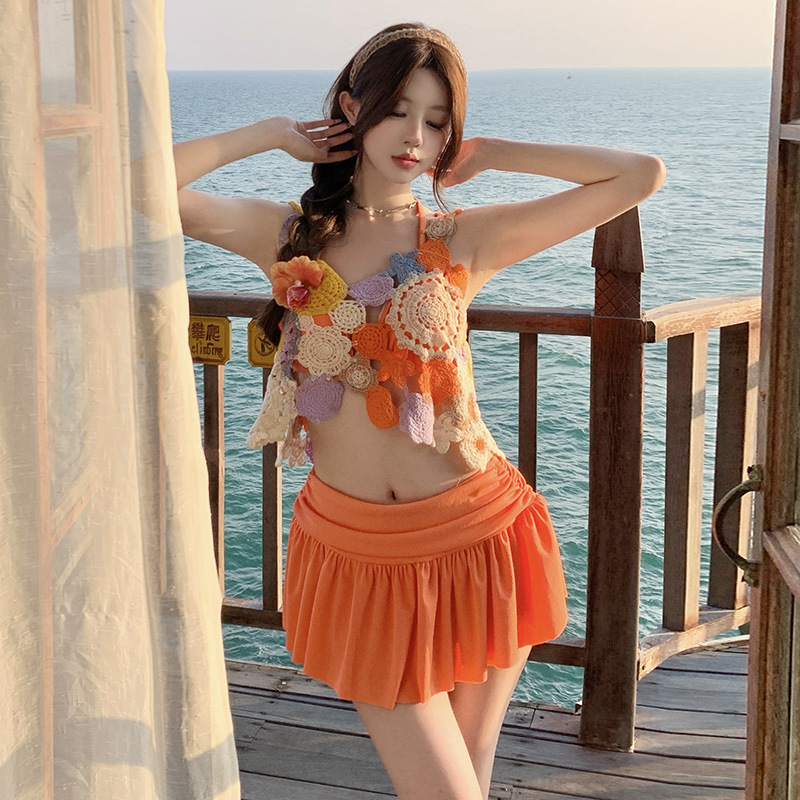 니트 비키니 수영복 여성의 2025 년 신상품. 섹시한 크기 가슴 작은 향기로운 스타일 분할 치마 뜨거운 봄 휴가