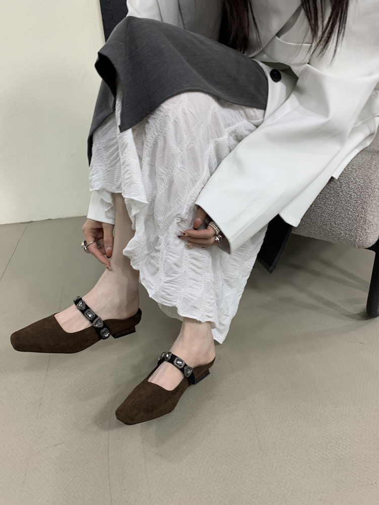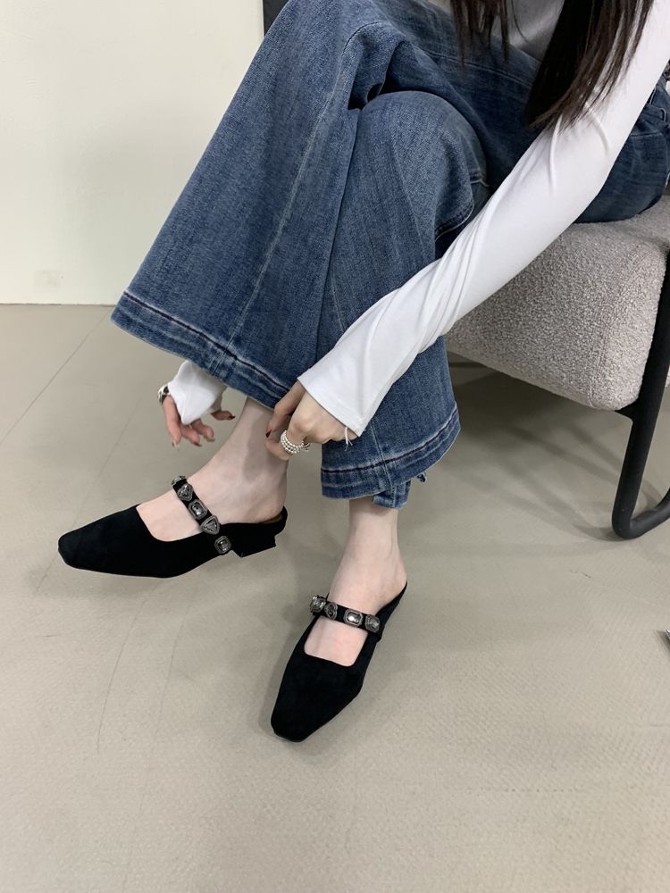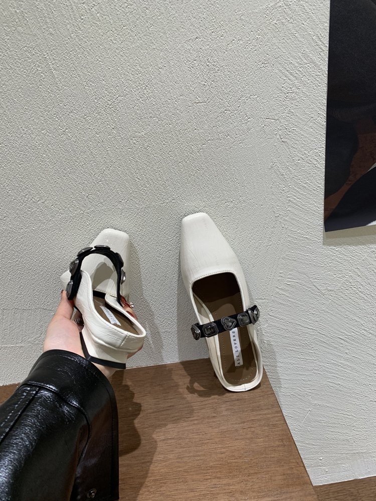 틈새 디자인 센스 낮은 힐 Baotou 하프 슬리퍼 여성용 외부 착용 게으른 한 페달 작은 스퀘어 헤드 뮬러 신발 스퀘어 헤드 슬리퍼