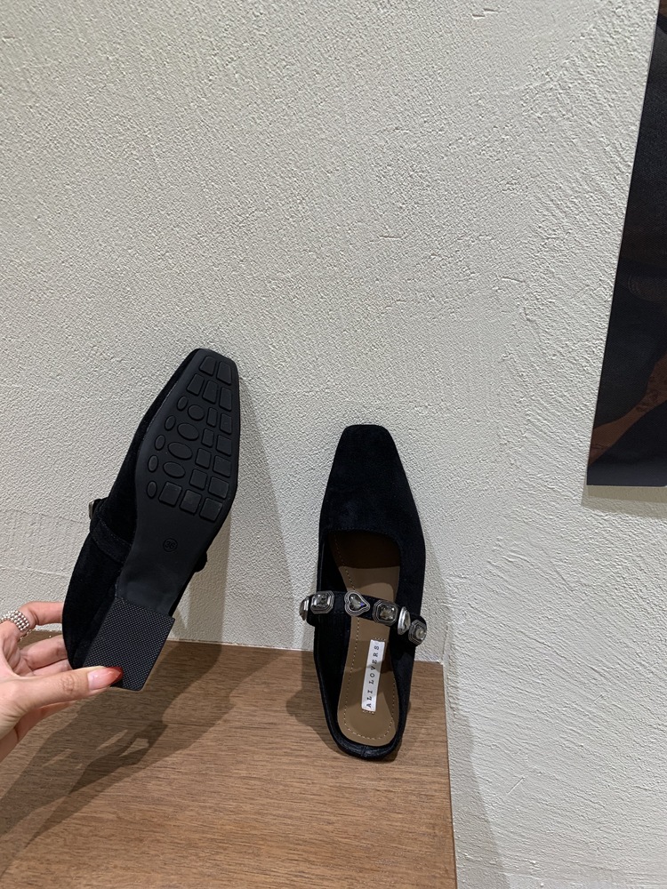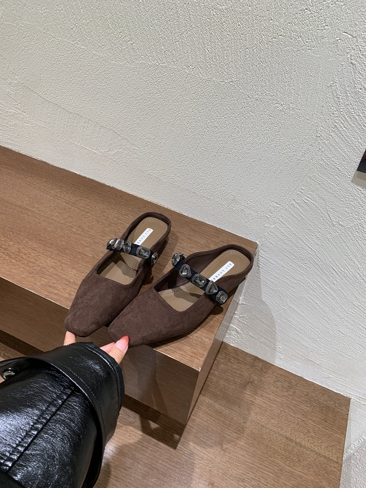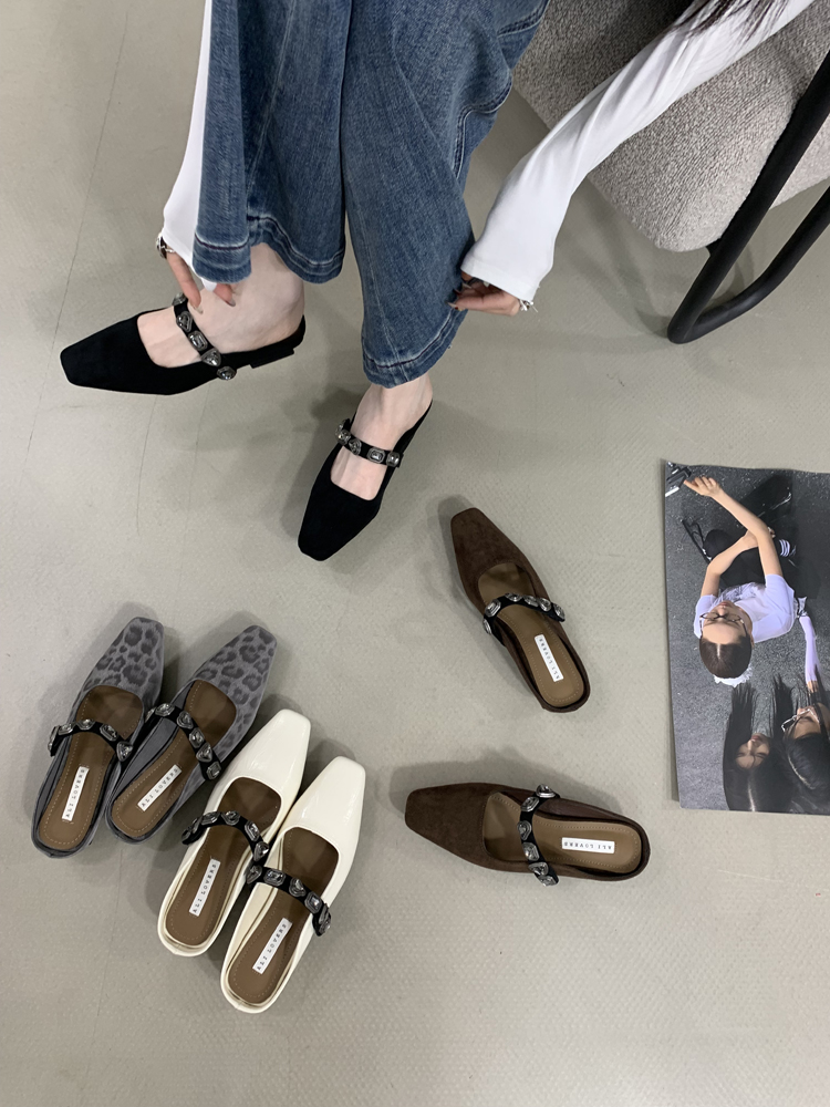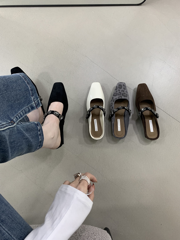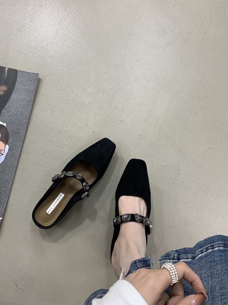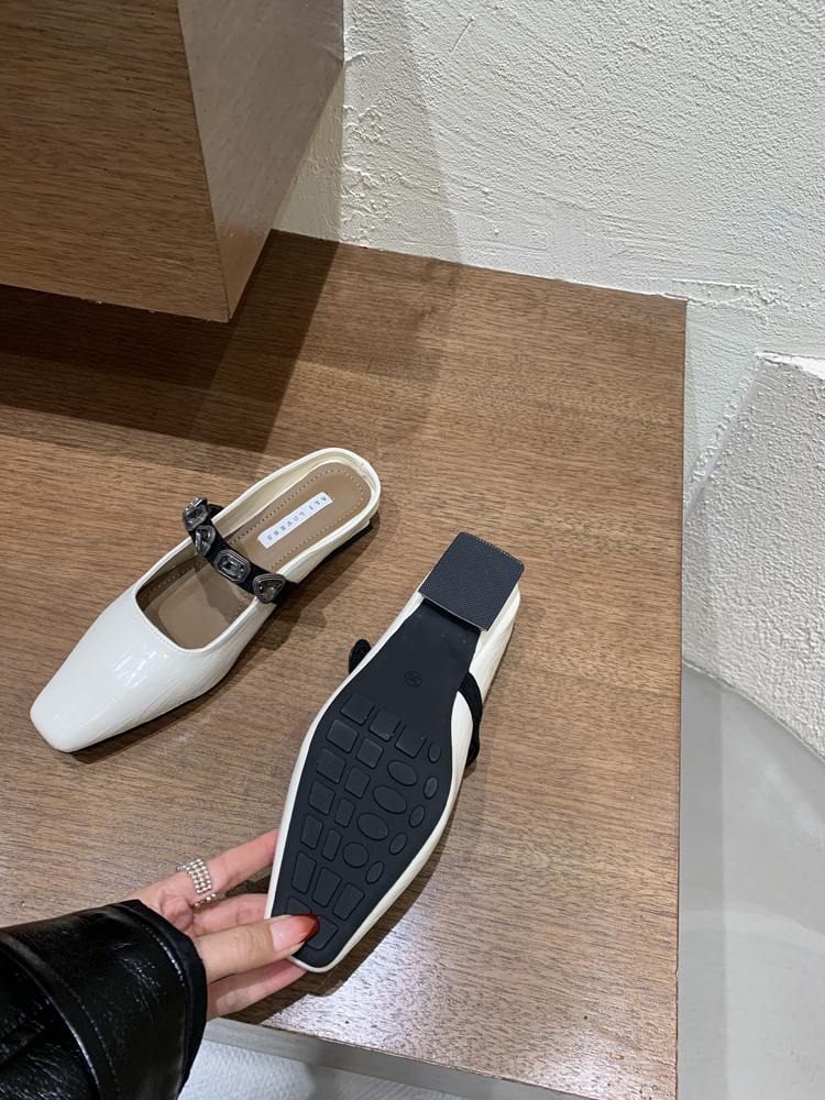틈새 디자인 센스 낮은 힐 Baotou 하프 슬리퍼 여성용 외부 착용 게으른 한 페달 작은 스퀘어 헤드 뮬러 신발 스퀘어 헤드 슬리퍼스토어 가기
