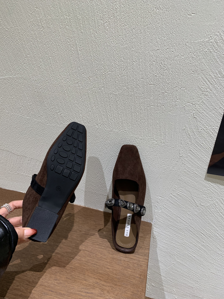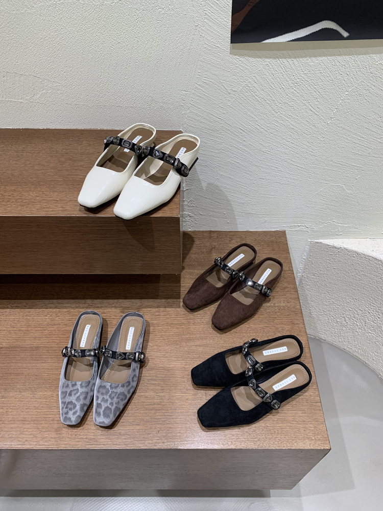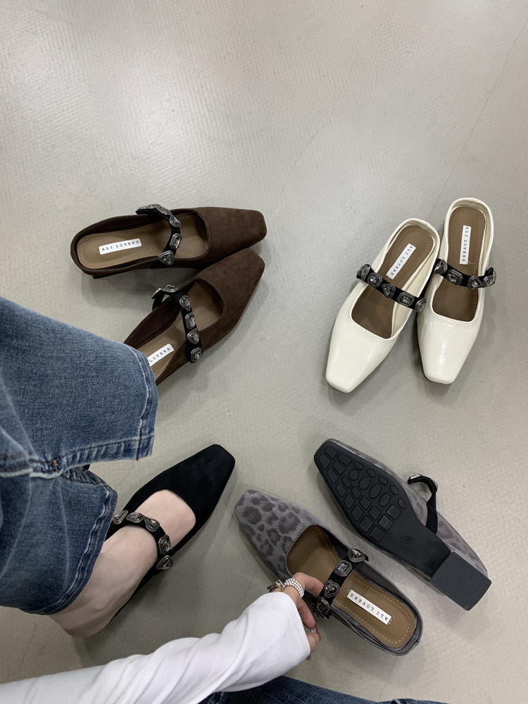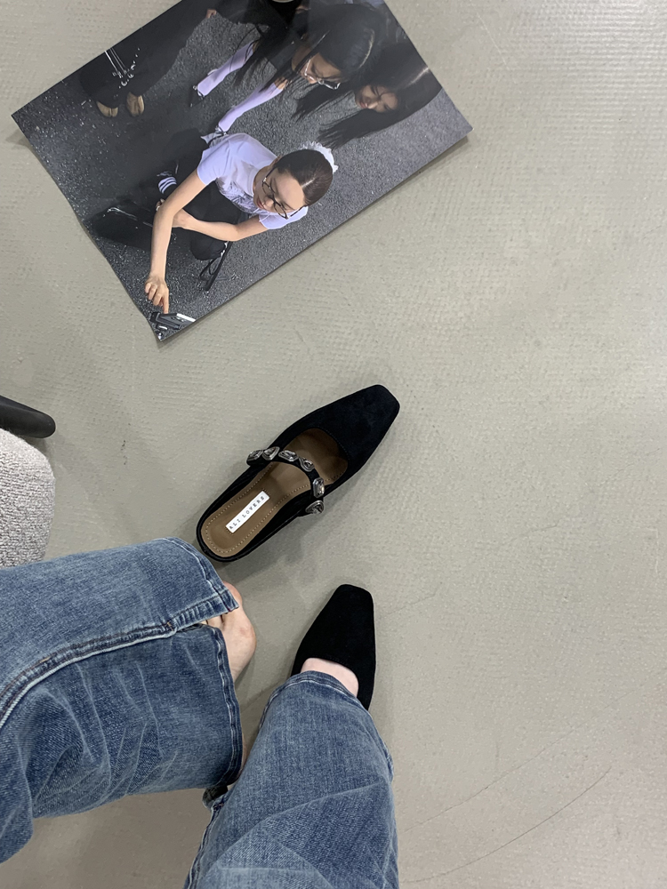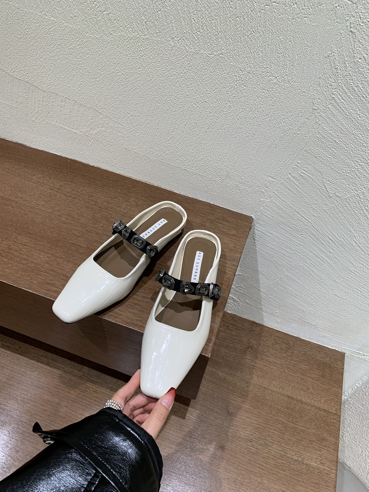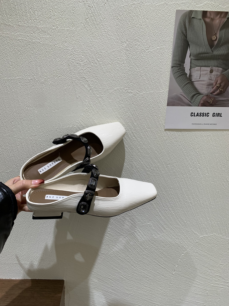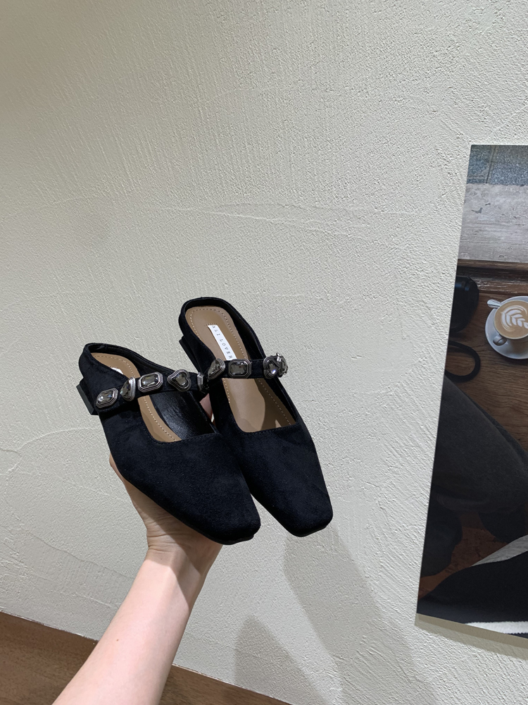 틈새 디자인 센스 낮은 힐 Baotou 하프 슬리퍼 여성용 외부 착용 게으른 한 페달 작은 스퀘어 헤드 뮬러 신발 스퀘어 헤드 슬리퍼스토어 가기