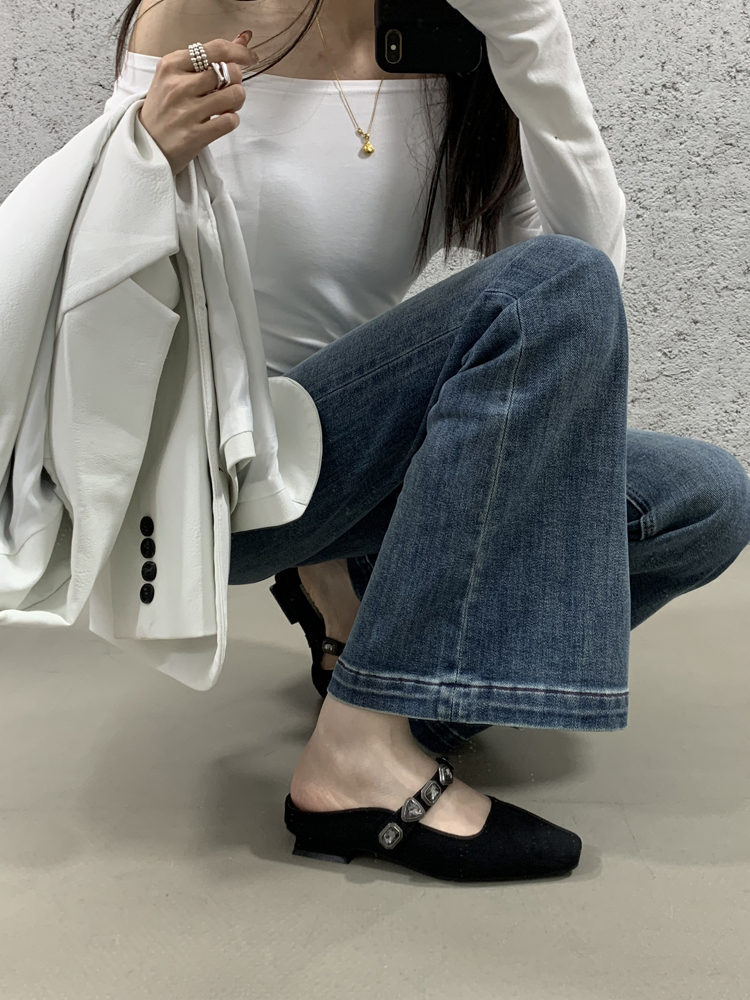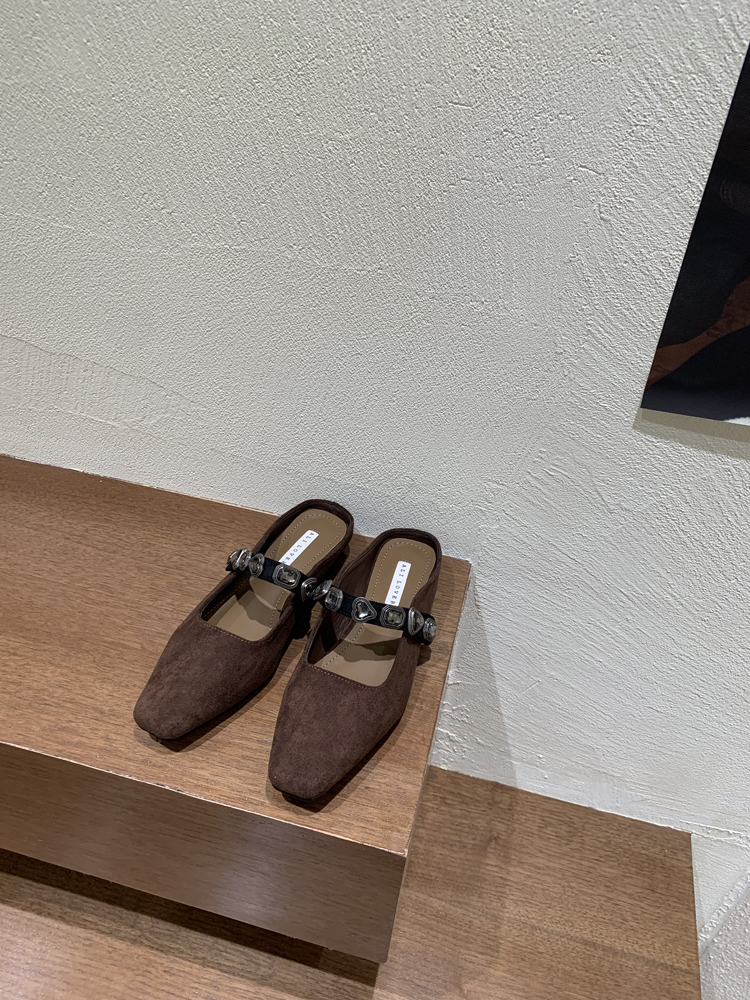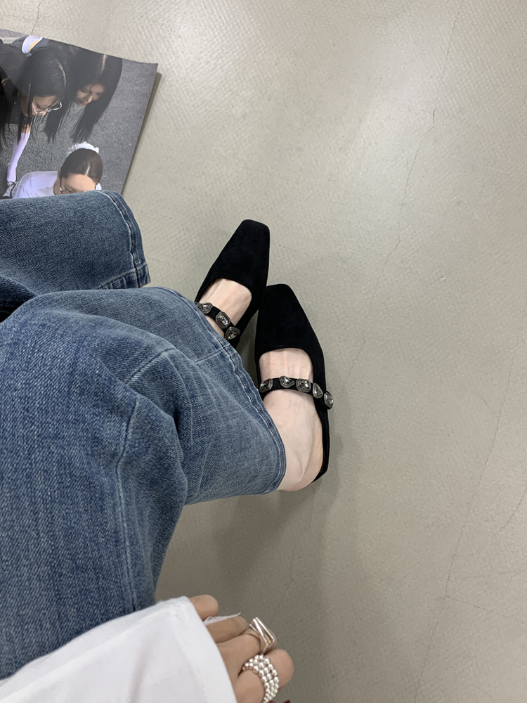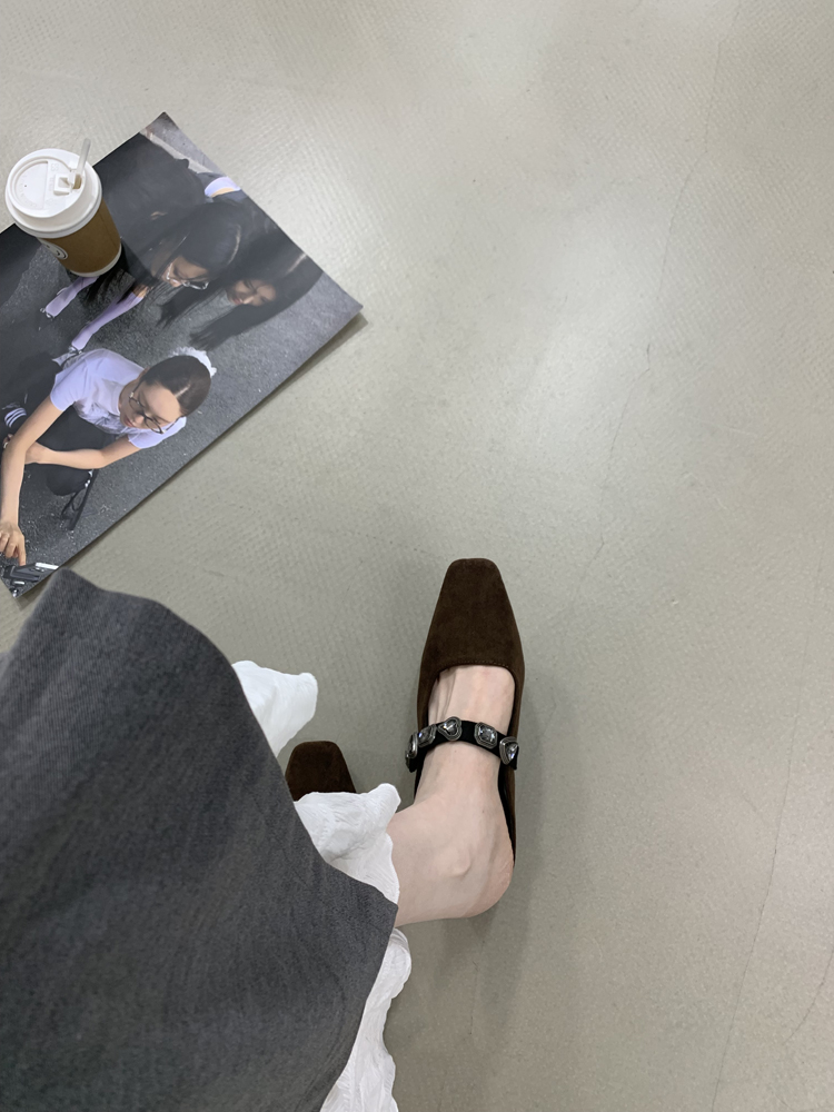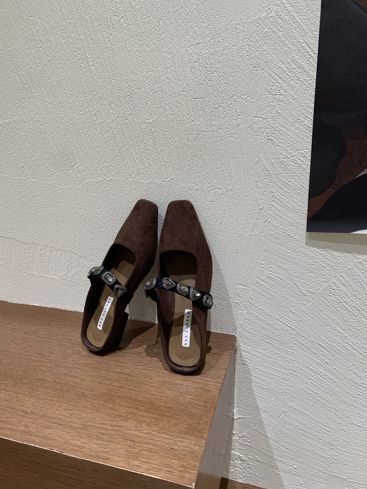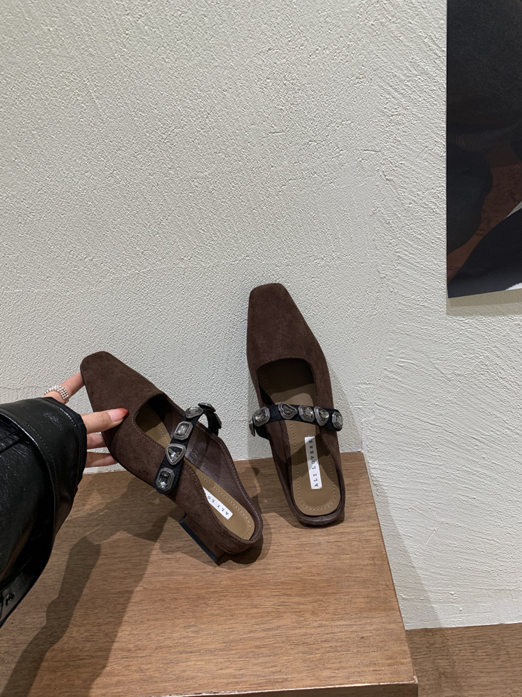 틈새 디자인 센스 낮은 힐 Baotou 하프 슬리퍼 여성용 외부 착용 게으른 한 페달 작은 스퀘어 헤드 뮬러 신발 스퀘어 헤드 슬리퍼스토어 가기