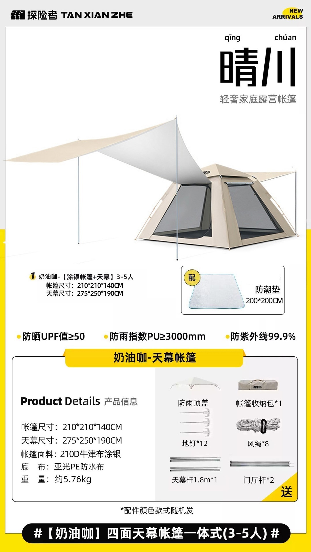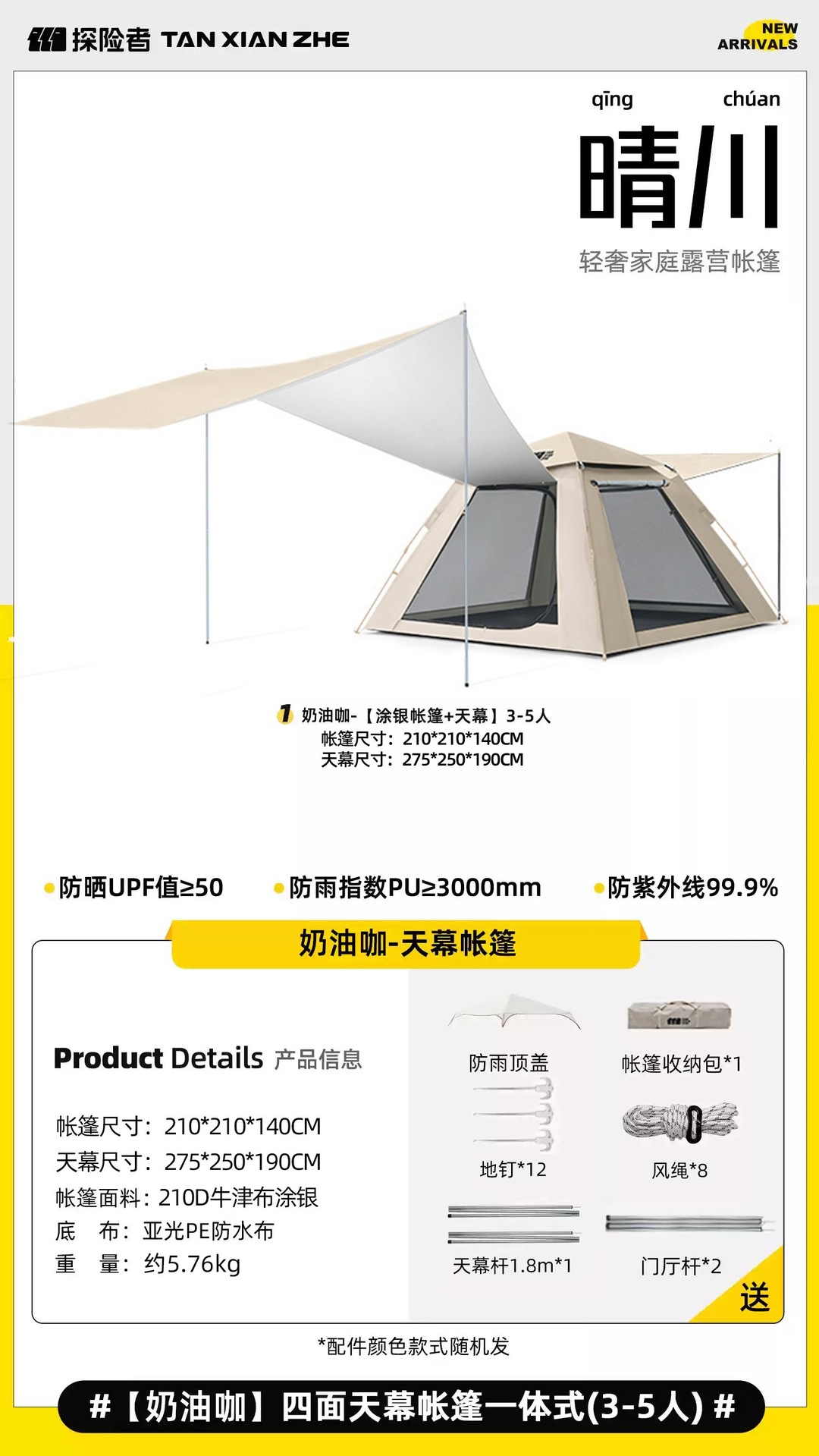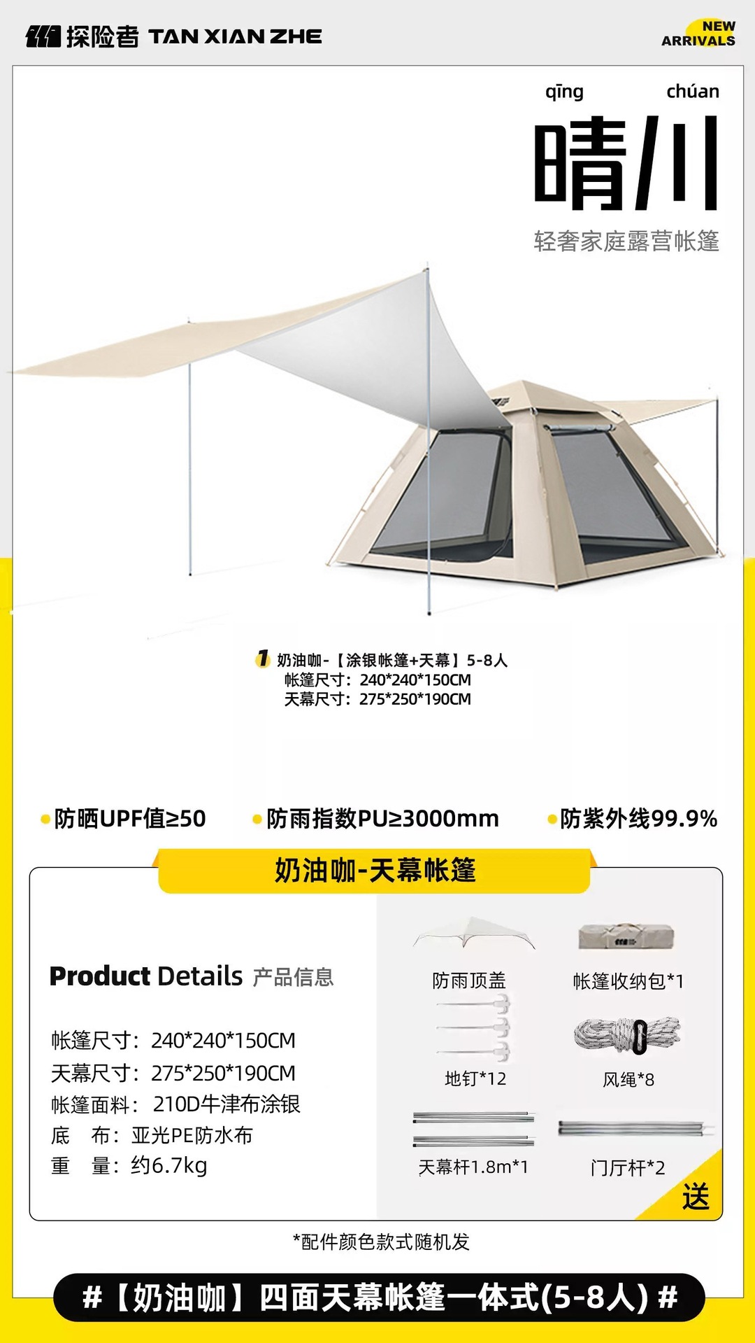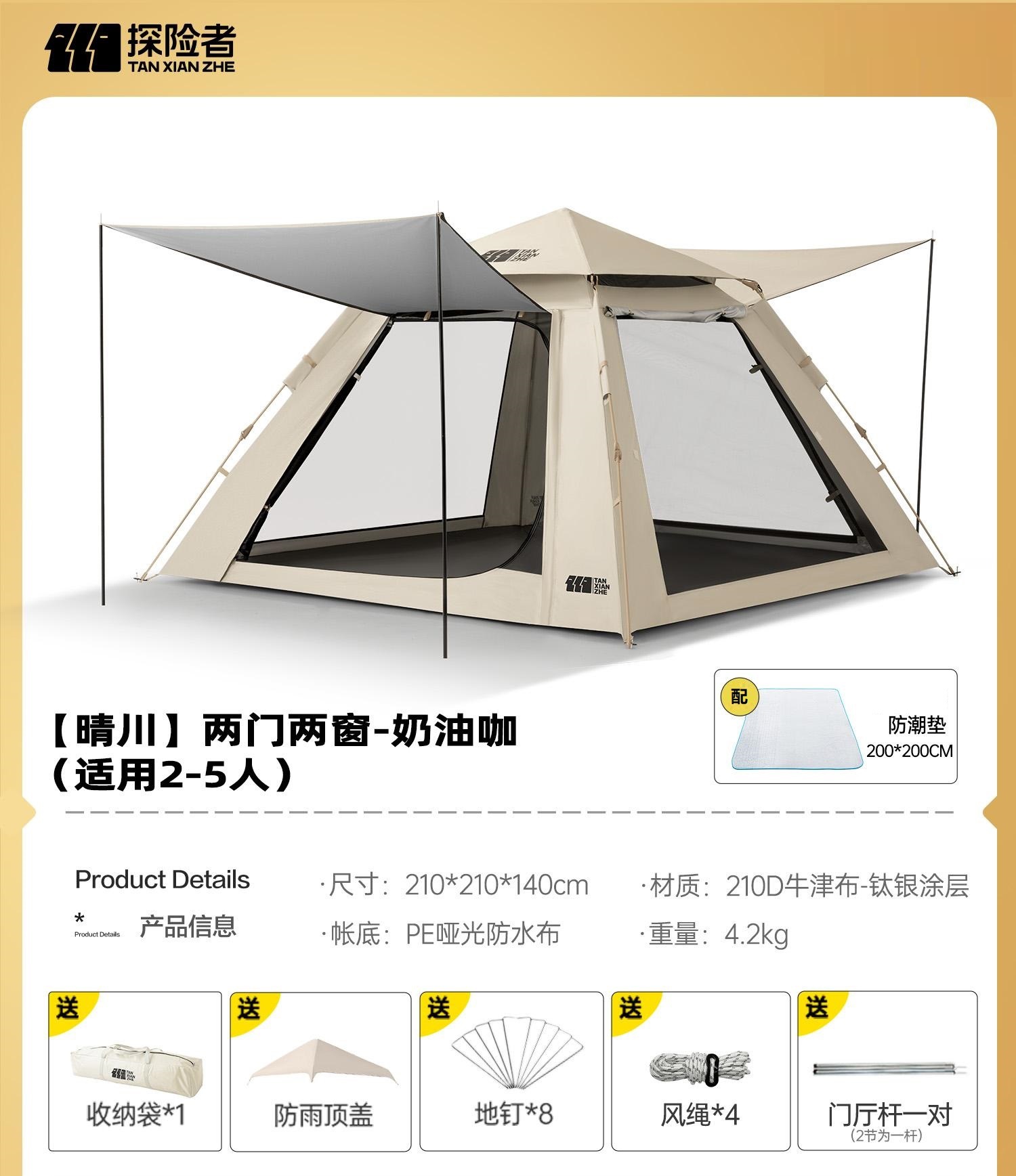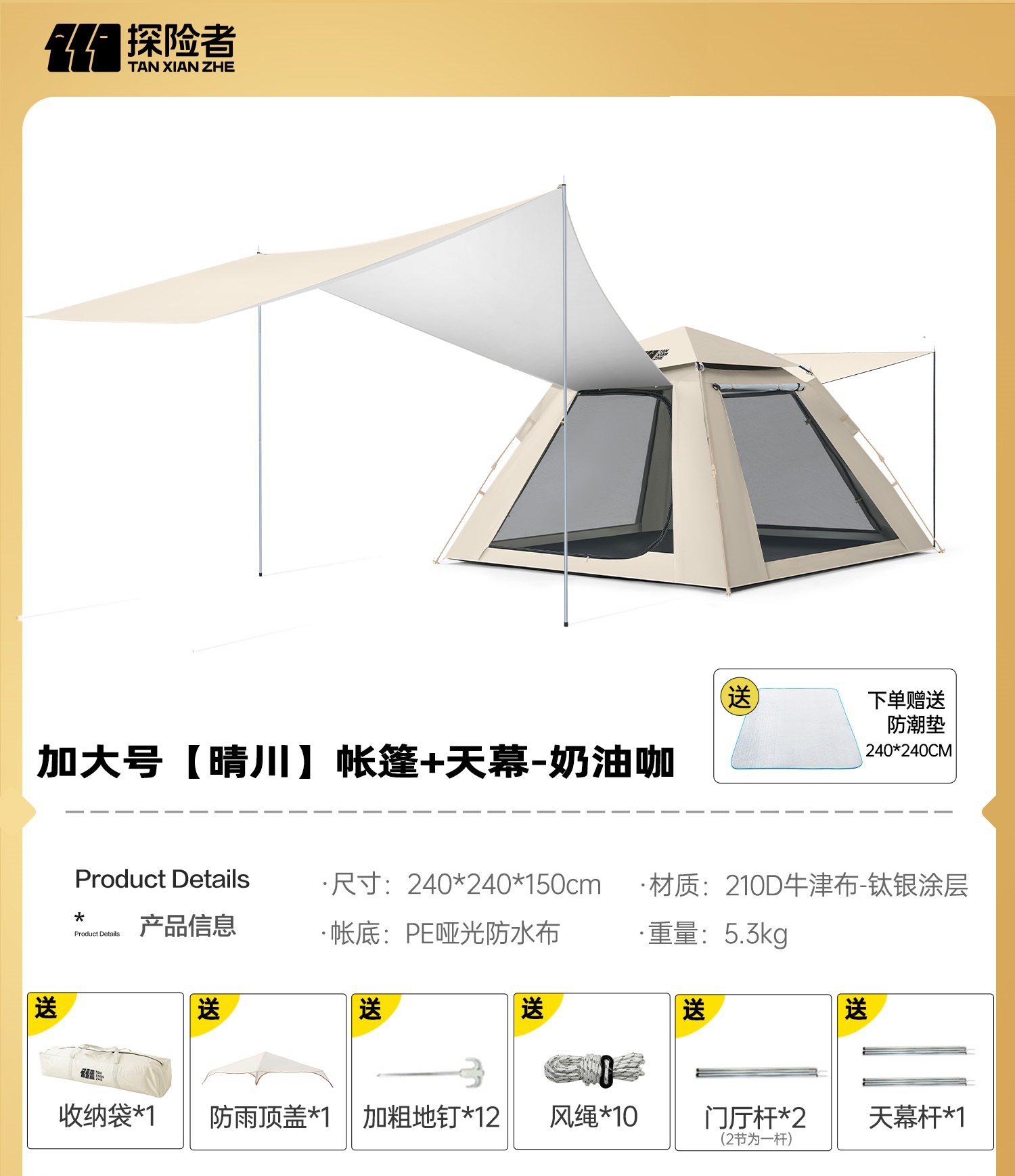• 대형 텐트 +7㎡캐노피 [방 1개, 거실 2개] 크림커피