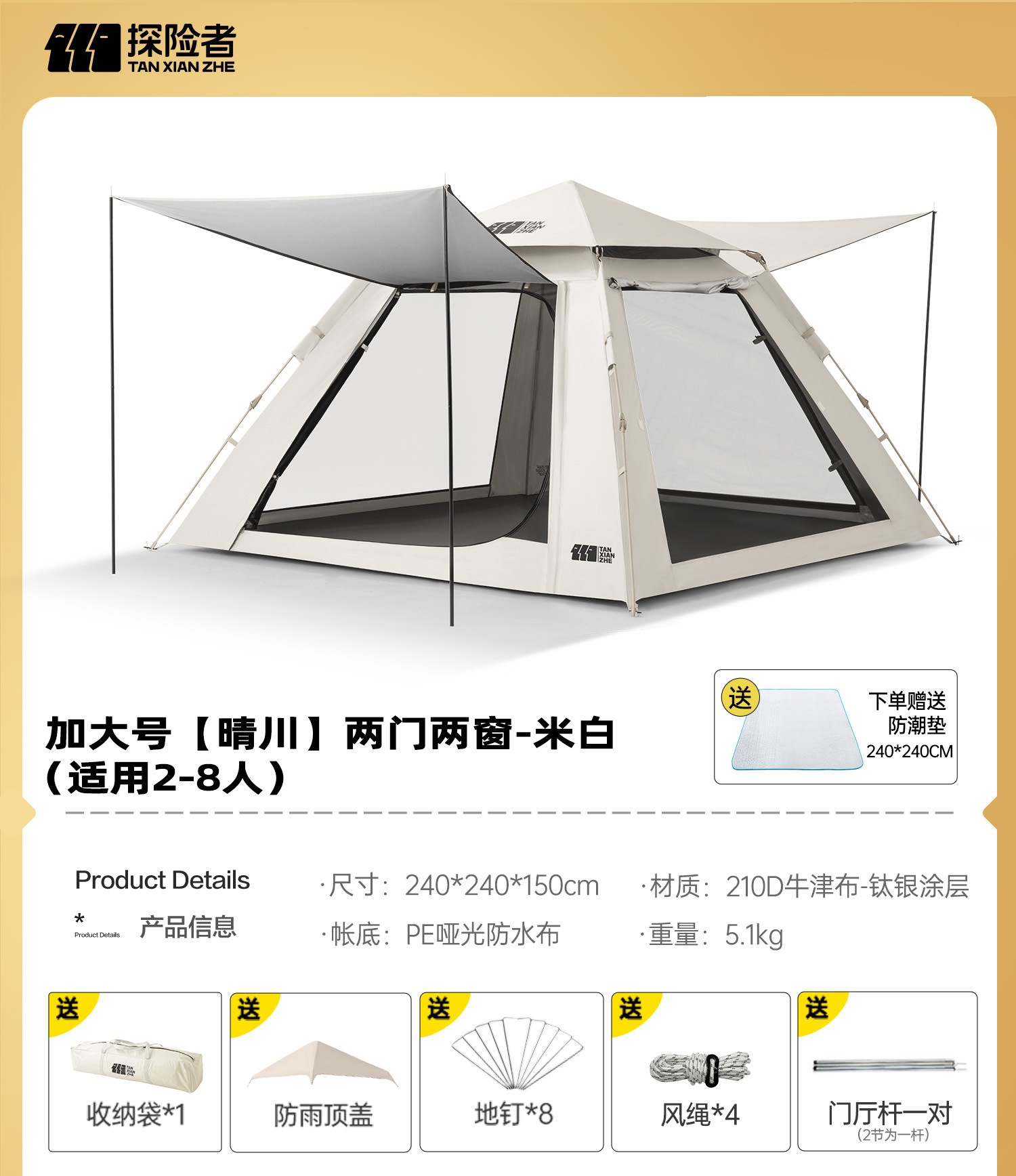 • 특대형 텐트 + 캐노피 + 방습 매트