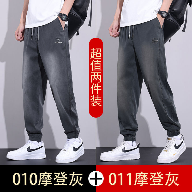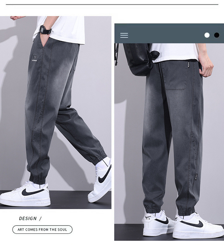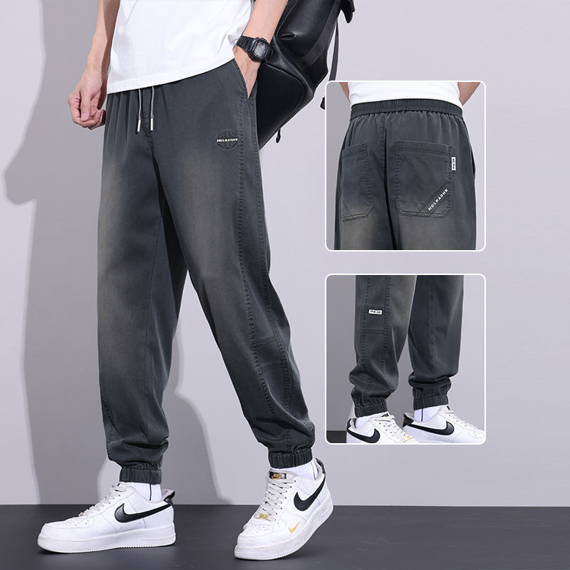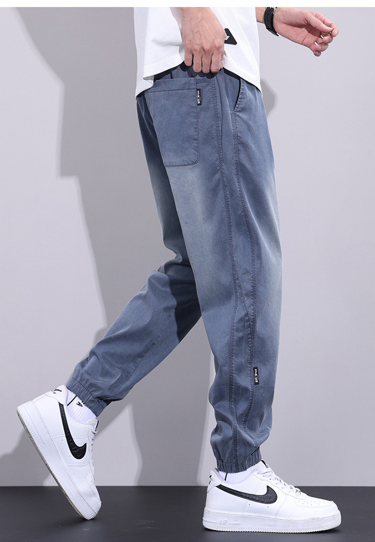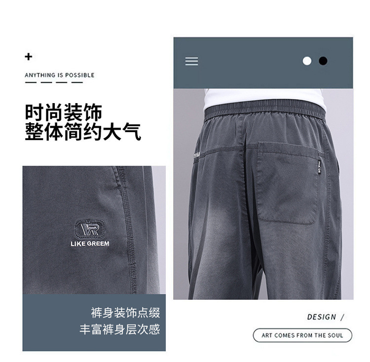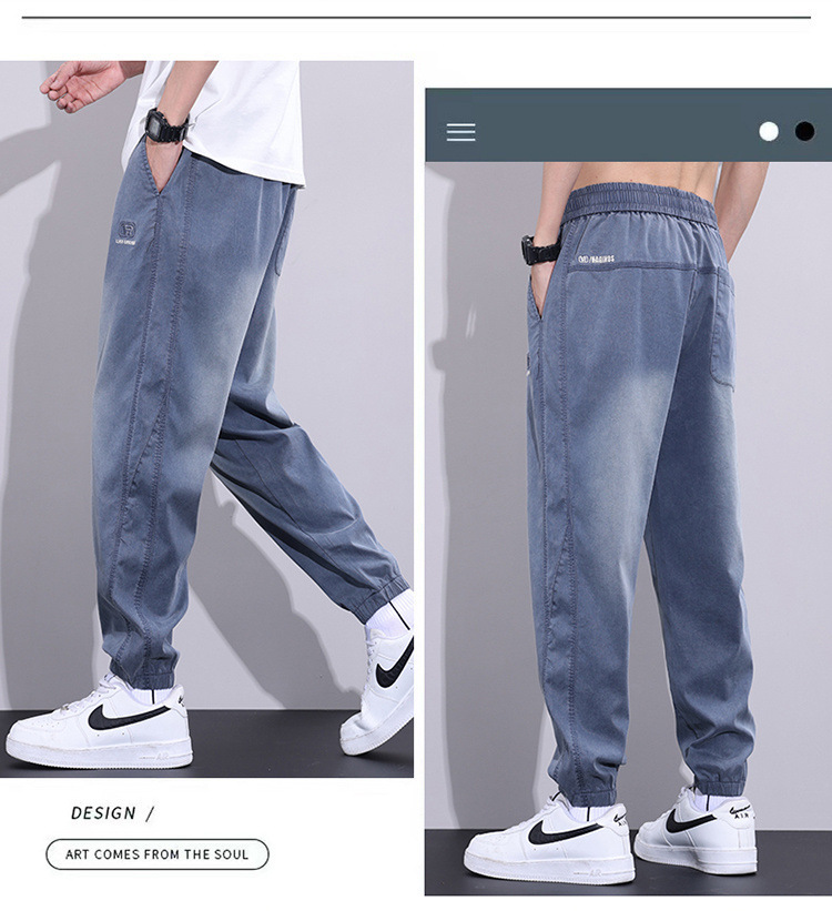 아메리칸 스타일 캐주얼 바지 남자 여름 아이스 실크 얇은 느슨한 넥타이 텐셀 청바지 유행 브랜드 빈티지 자른 바지스토어 가기
