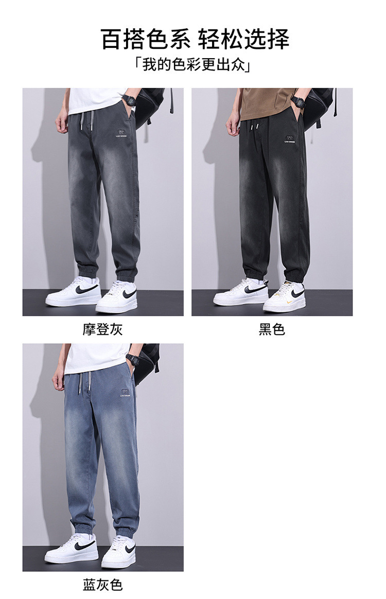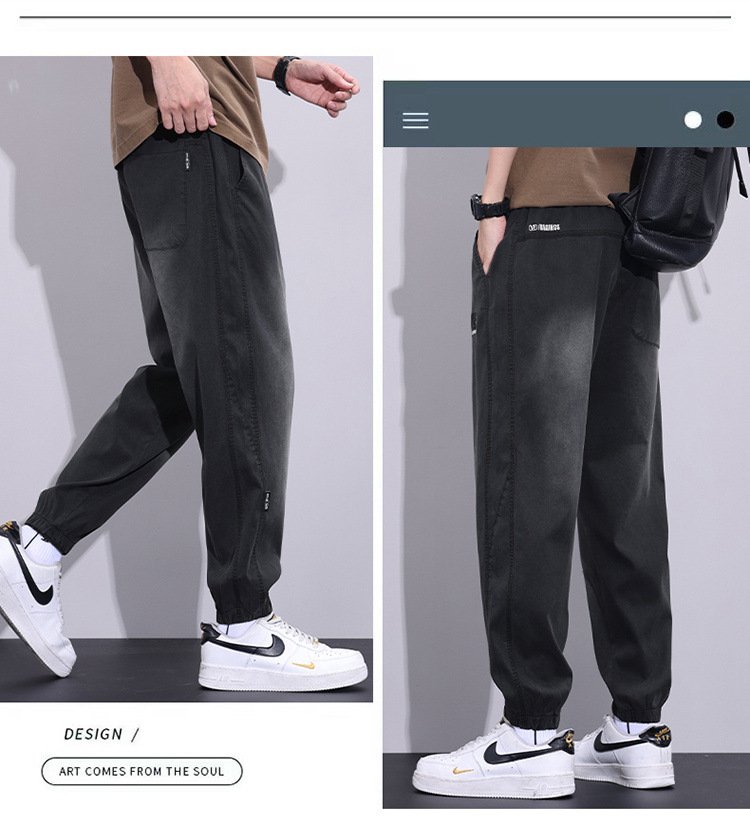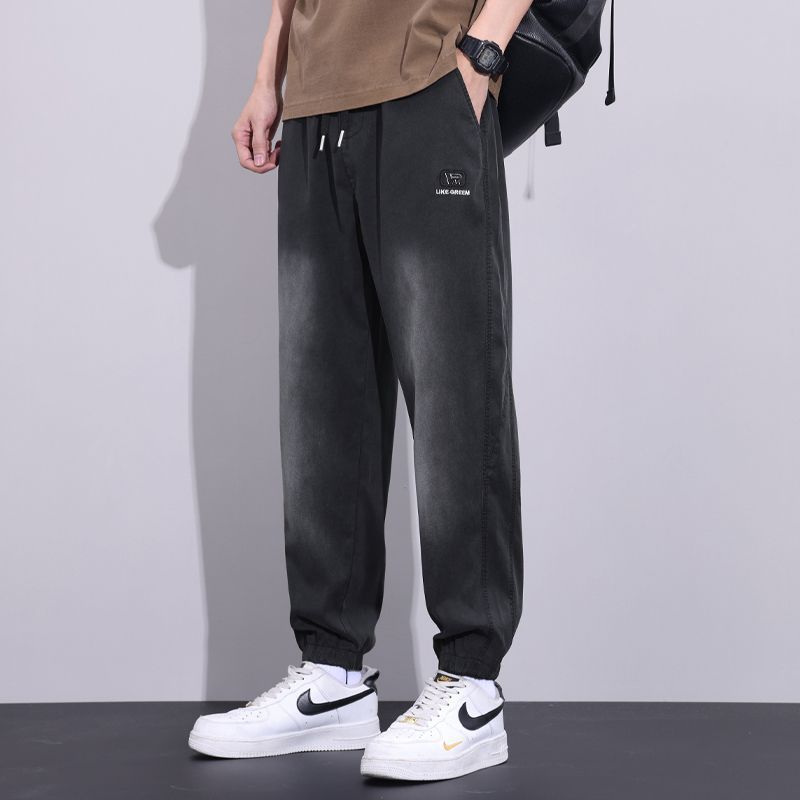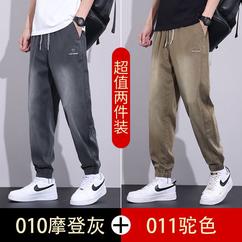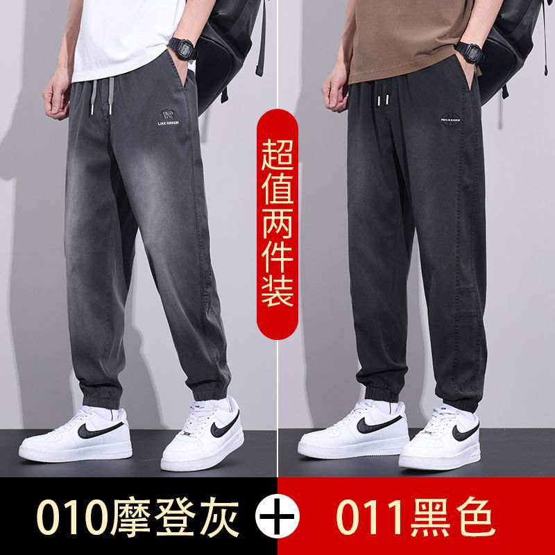 아메리칸 스타일 캐주얼 바지 남자 여름 아이스 실크 얇은 느슨한 넥타이 텐셀 청바지 유행 브랜드 빈티지 자른 바지스토어 가기