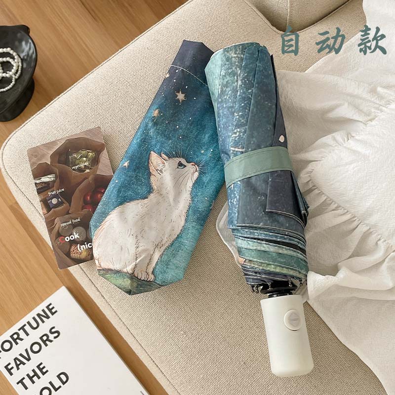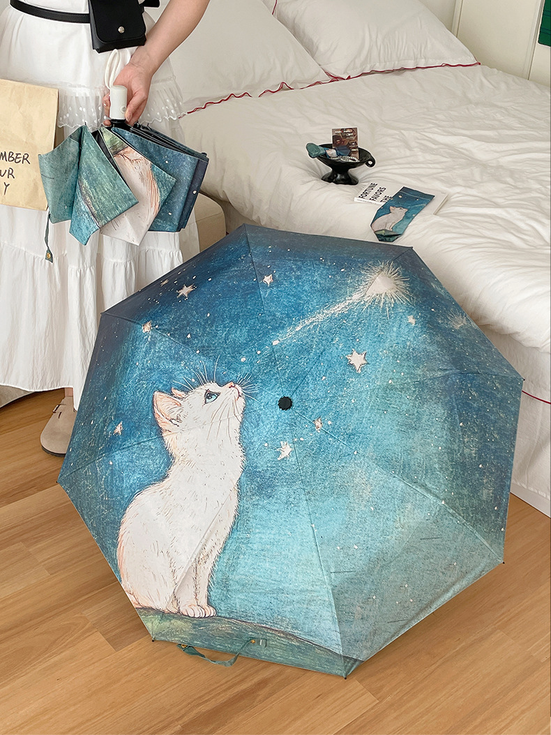 높은 가치의 귀여운 만화 접히는 우산 완전 자동 태양 보호 UV 보호 맑고 비 보호 이중 목적 햇빛 휴대용 태양 우산