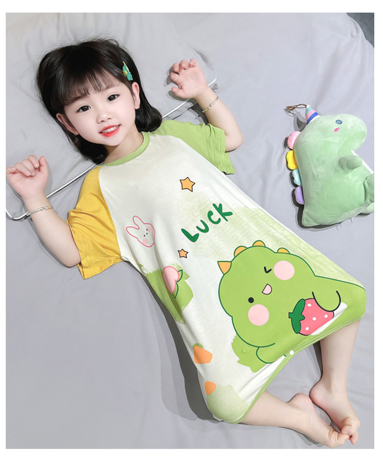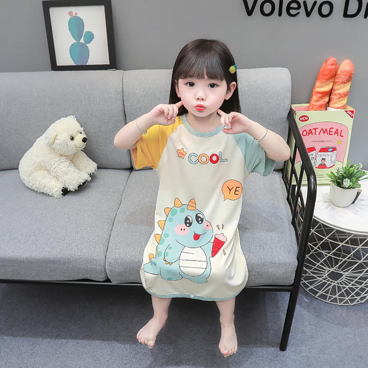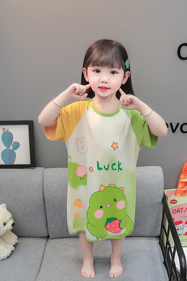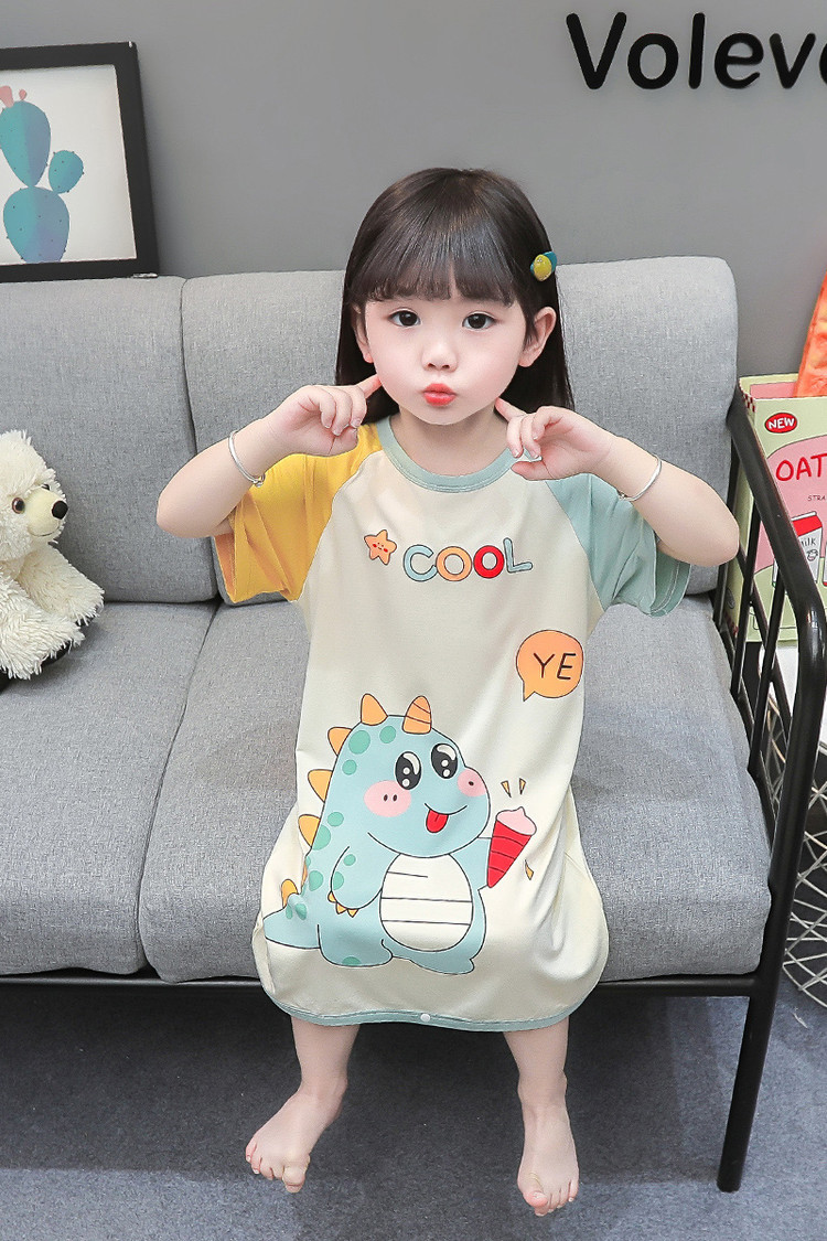 어린이 나이트 드레스 여름 아기 소녀의 모달 원 버튼 에어컨 옷 소녀의 만화 얇은 반팔 홈 옷스토어 가기