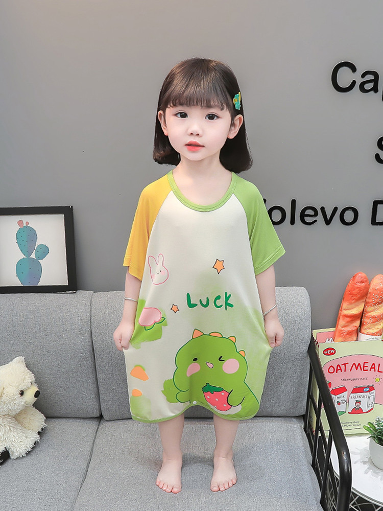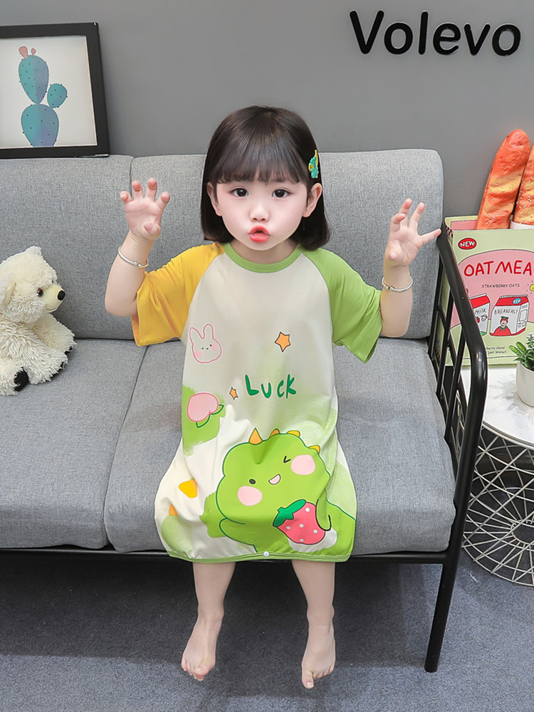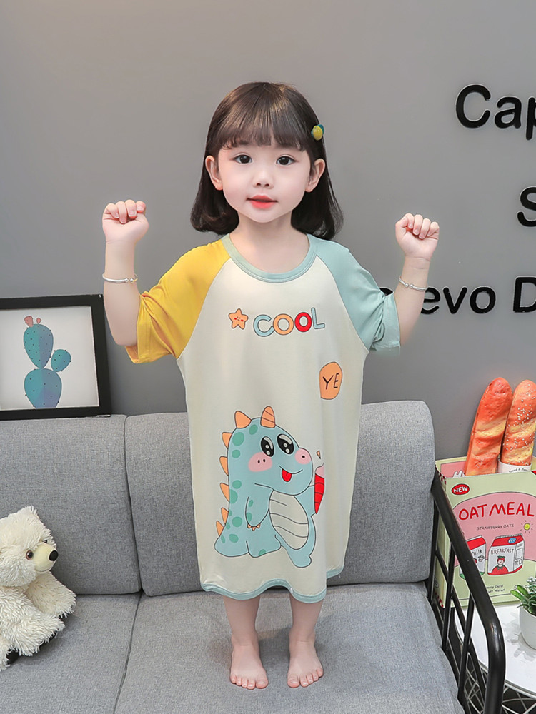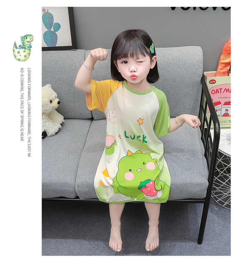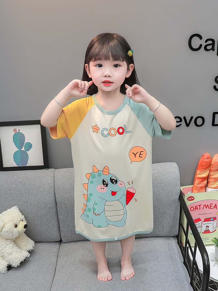 어린이 나이트 드레스 여름 아기 소녀의 모달 원 버튼 에어컨 옷 소녀의 만화 얇은 반팔 홈 옷스토어 가기