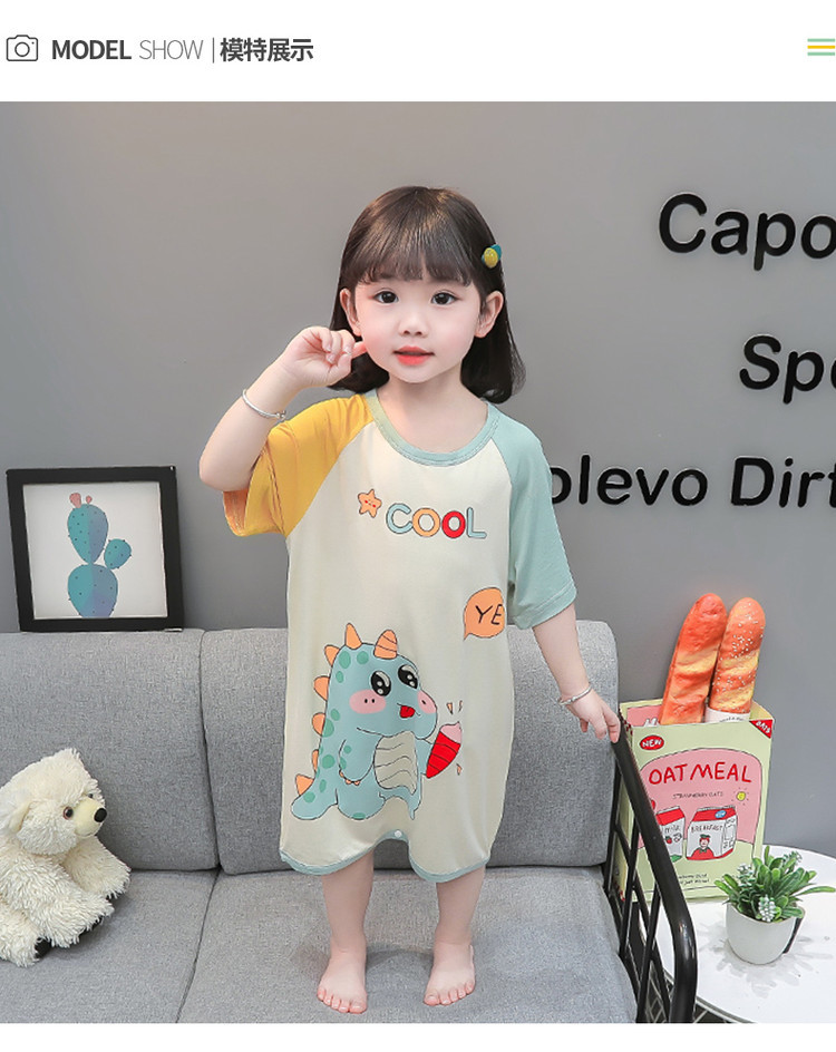 어린이 나이트 드레스 여름 아기 소녀의 모달 원 버튼 에어컨 옷 소녀의 만화 얇은 반팔 홈 옷