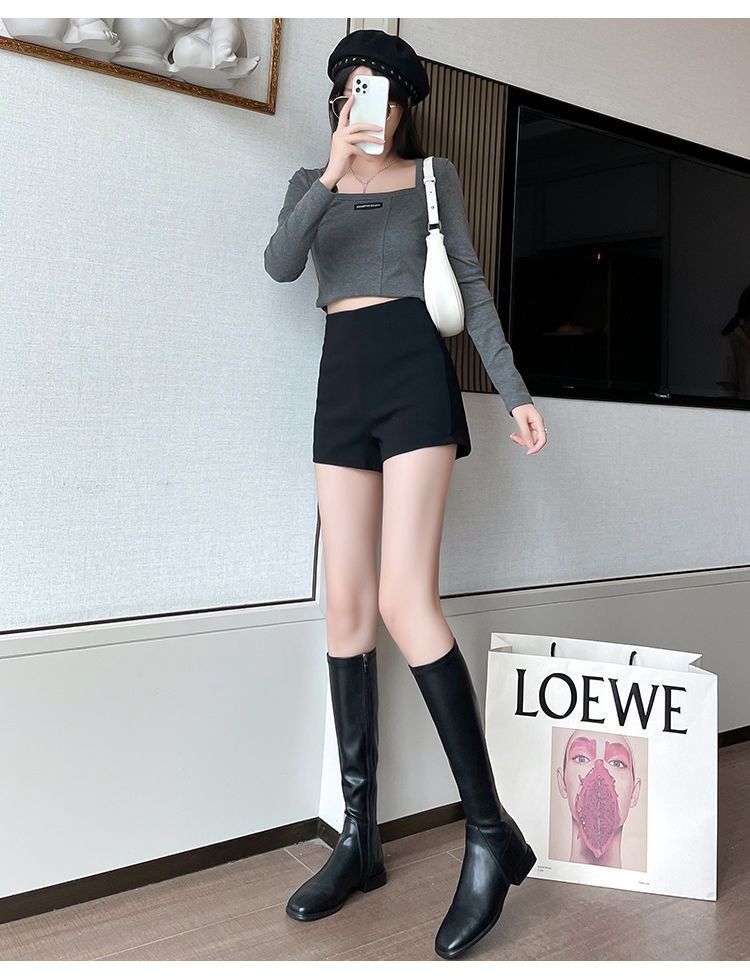 타이트한 반바지 높은 허리 외부 서양식 슈퍼 반바지 핫 팬츠 올매치 캐주얼 반바지 높은 탄성 꽉 다리 엉덩이 바지스토어 가기