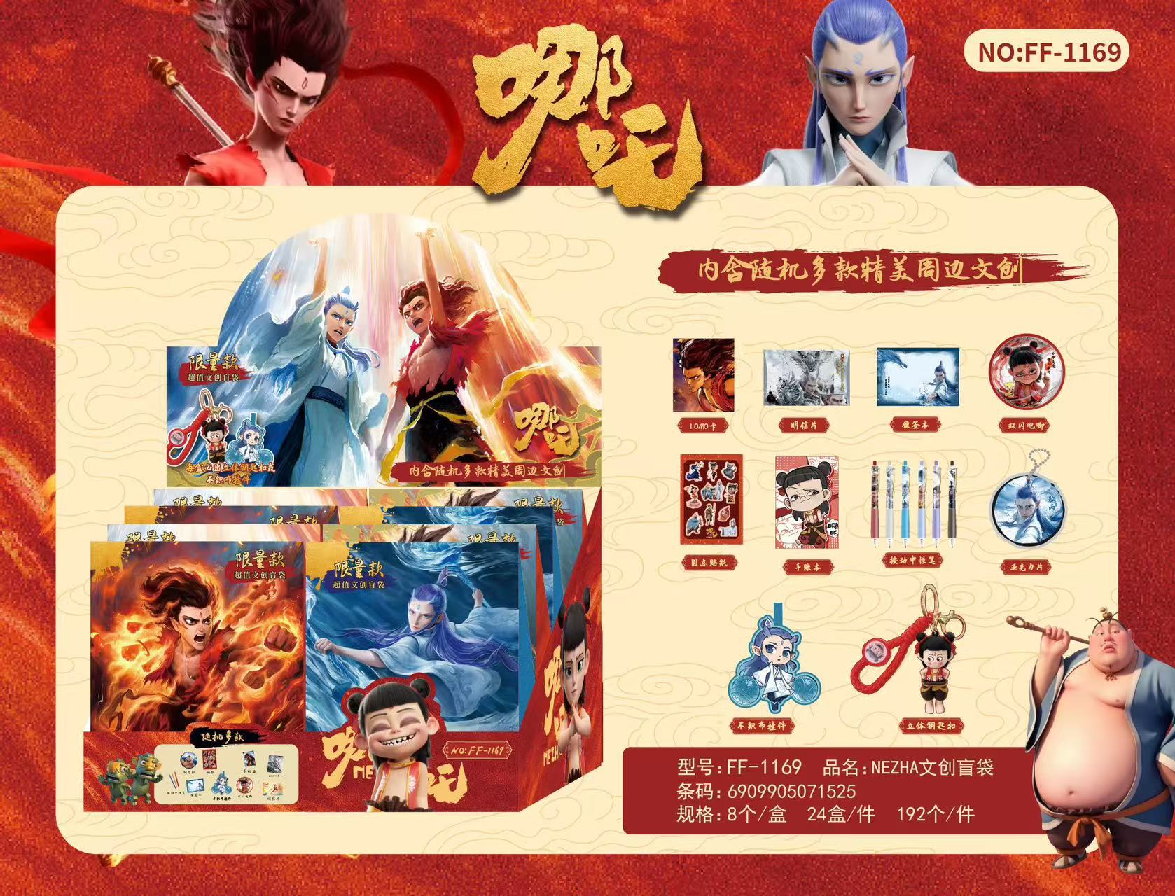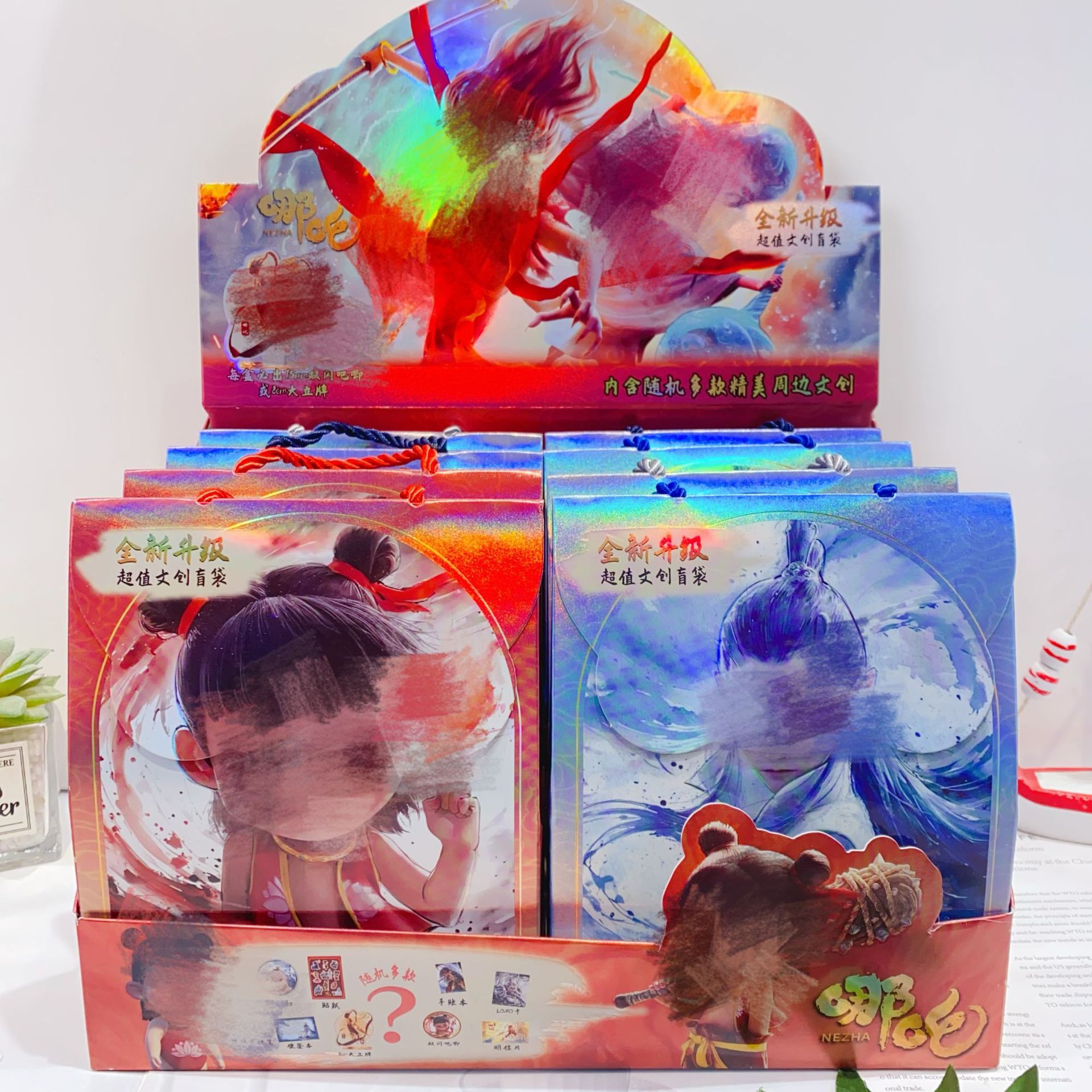 새로운 Nezha Naohai 빅 블라인드 박스 귀여운 만화 문구 세트 핸드북 빅 블라인드 백 서프라이즈 선물 상자 선물스토어 가기