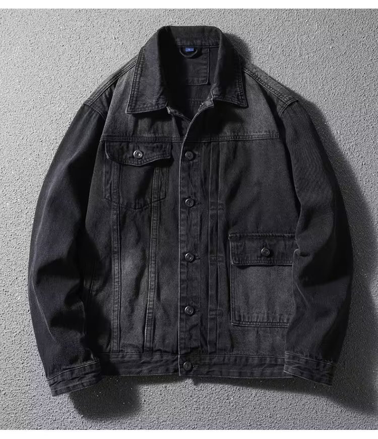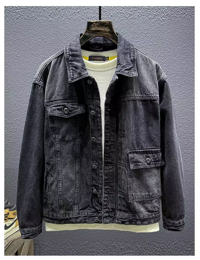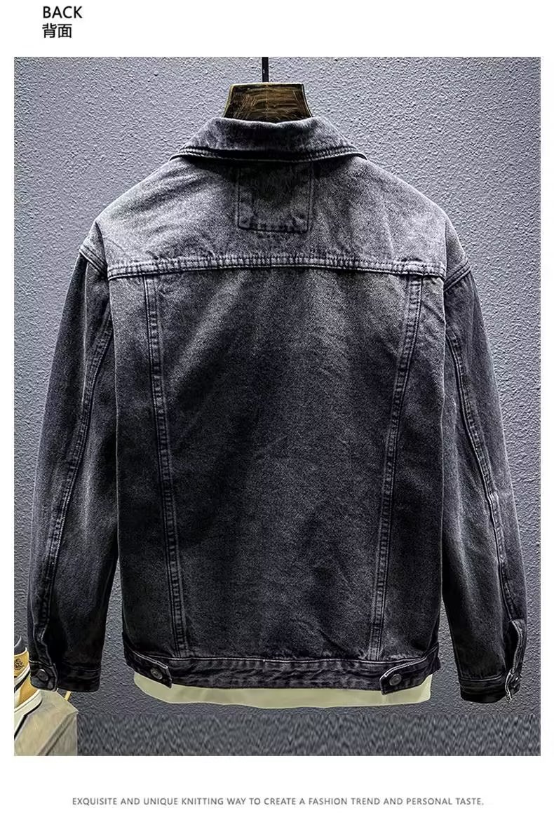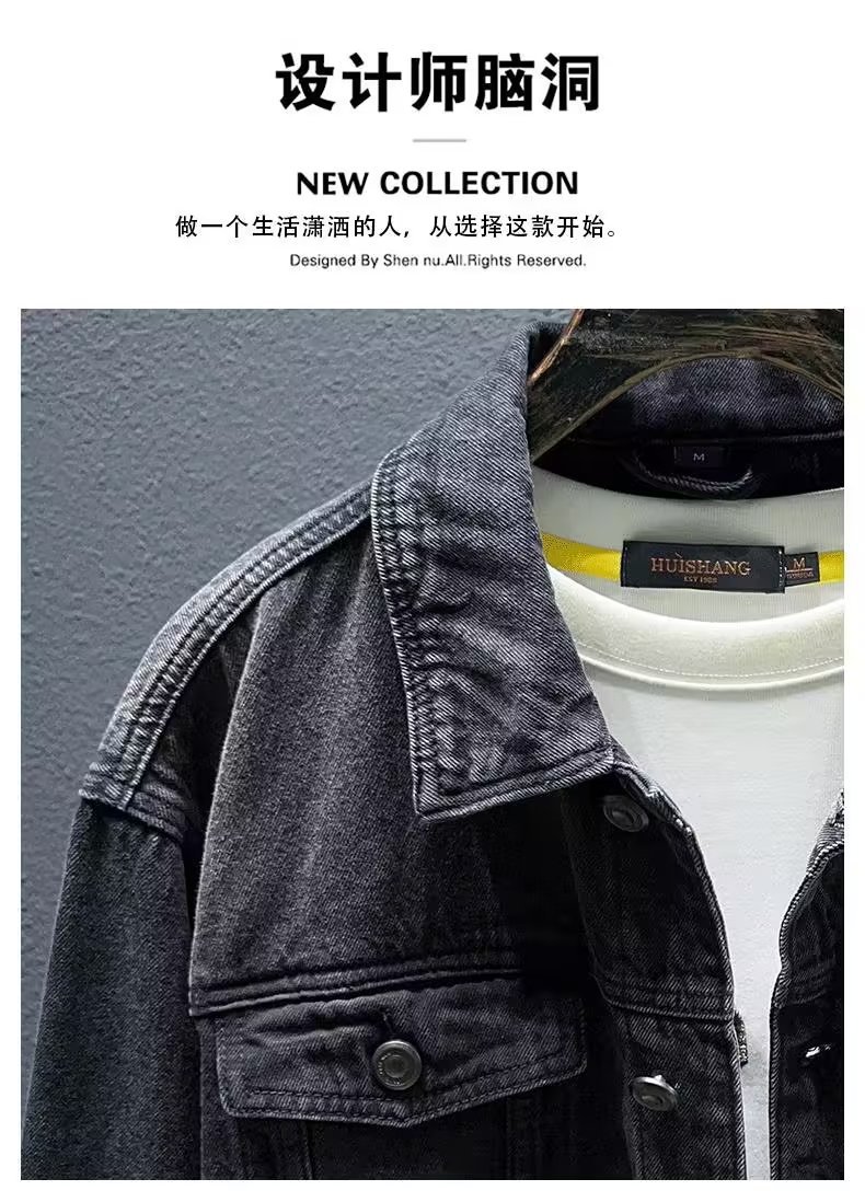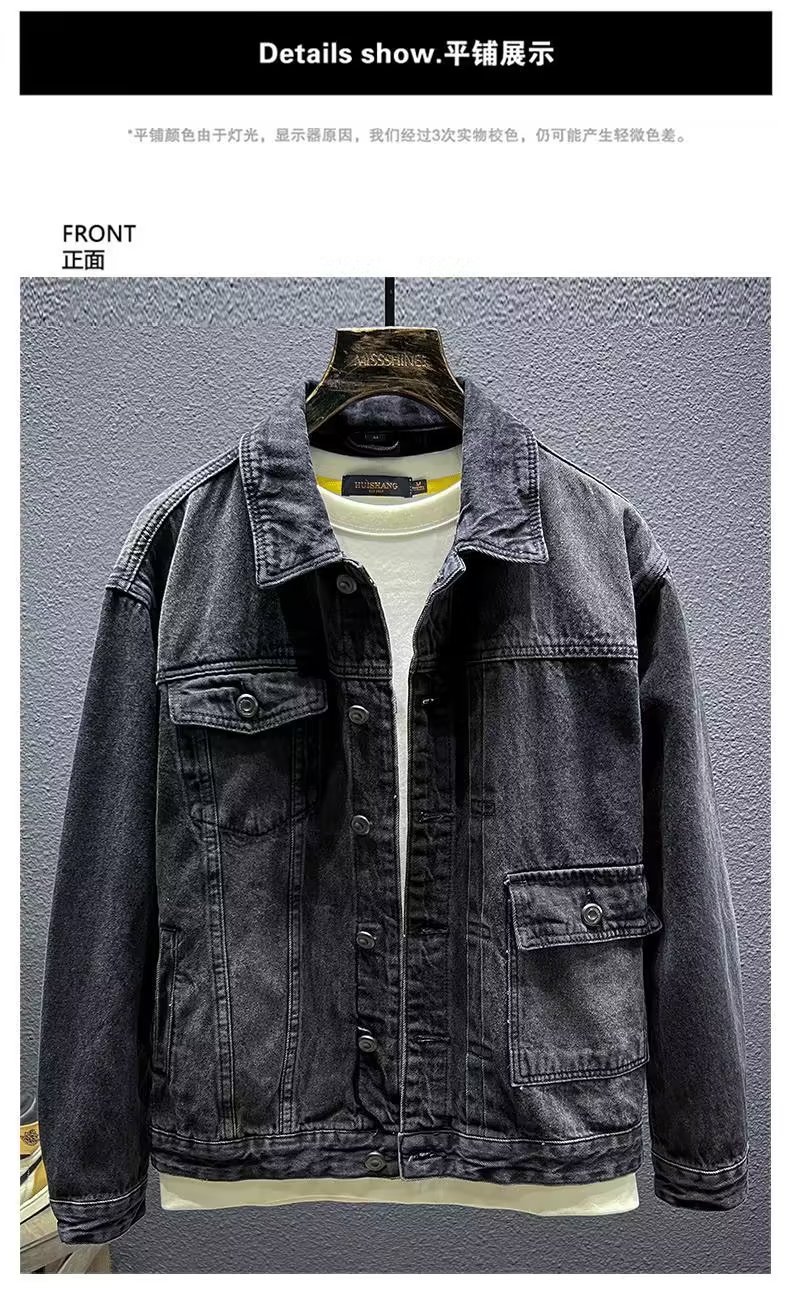 청바지 코트 트렌디 브랜드 유럽과 미국의 스트리트 보이즈 봄과 가을 하이 스트리트 아메리칸 스타일 리퍼 수제 체크 무늬 남성 캐주얼 재킷스토어 가기