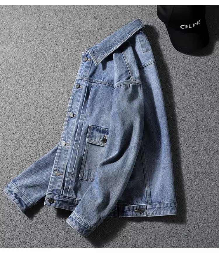 청바지 코트 트렌디 브랜드 유럽과 미국의 스트리트 보이즈 봄과 가을 하이 스트리트 아메리칸 스타일 리퍼 수제 체크 무늬 남성 캐주얼 재킷