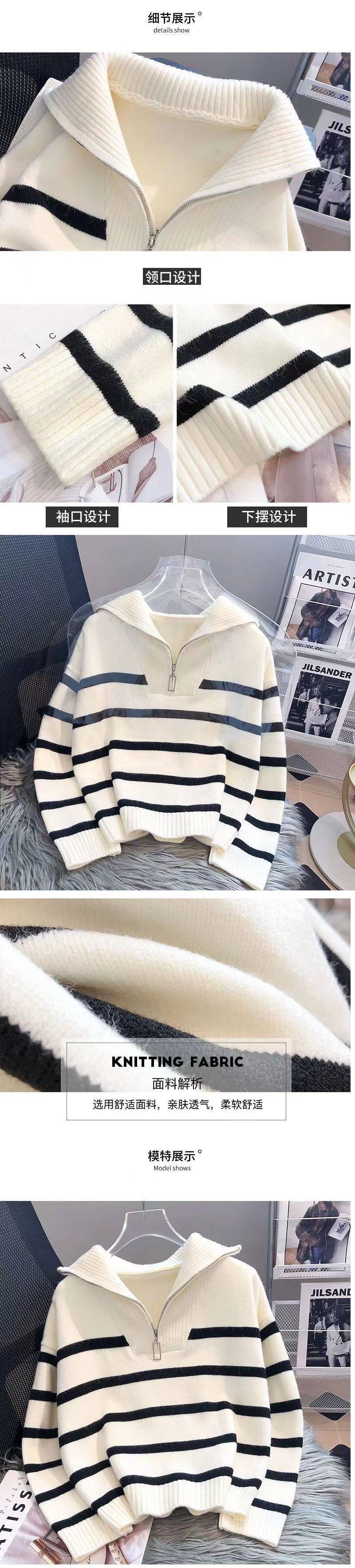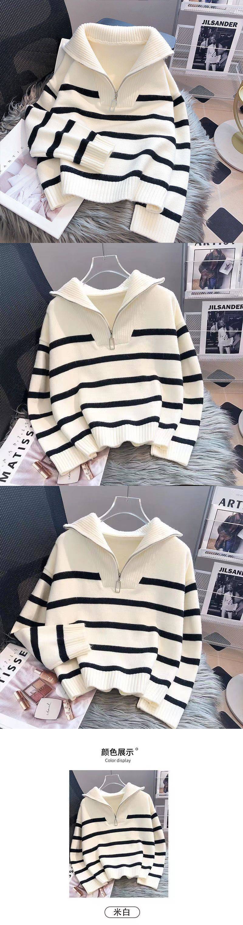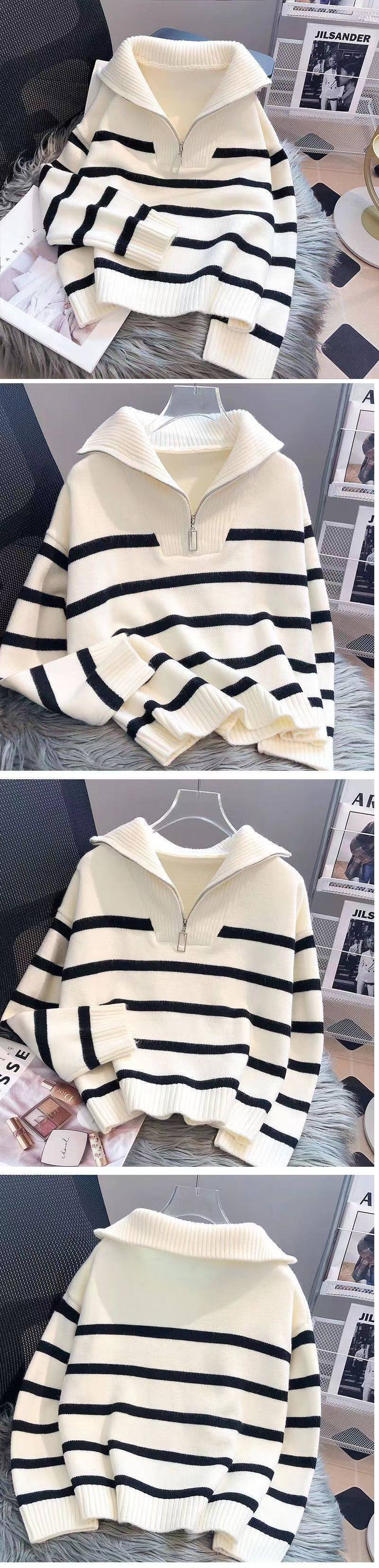여성 스웨터 여성의 봄과 봄이 내면에 두껍게 2025 새로운 스타일 스트라이프 베이스 니트 하프 지퍼 루스와 아름다운 아우터웨어스토어 가기