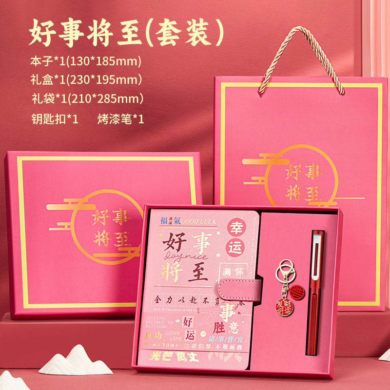 • 좋은 일이 다가옵니다 컬러북 + 행운을 빌어요 열쇠고리 + 페인트 펜 + 선물 상자 선물 가방