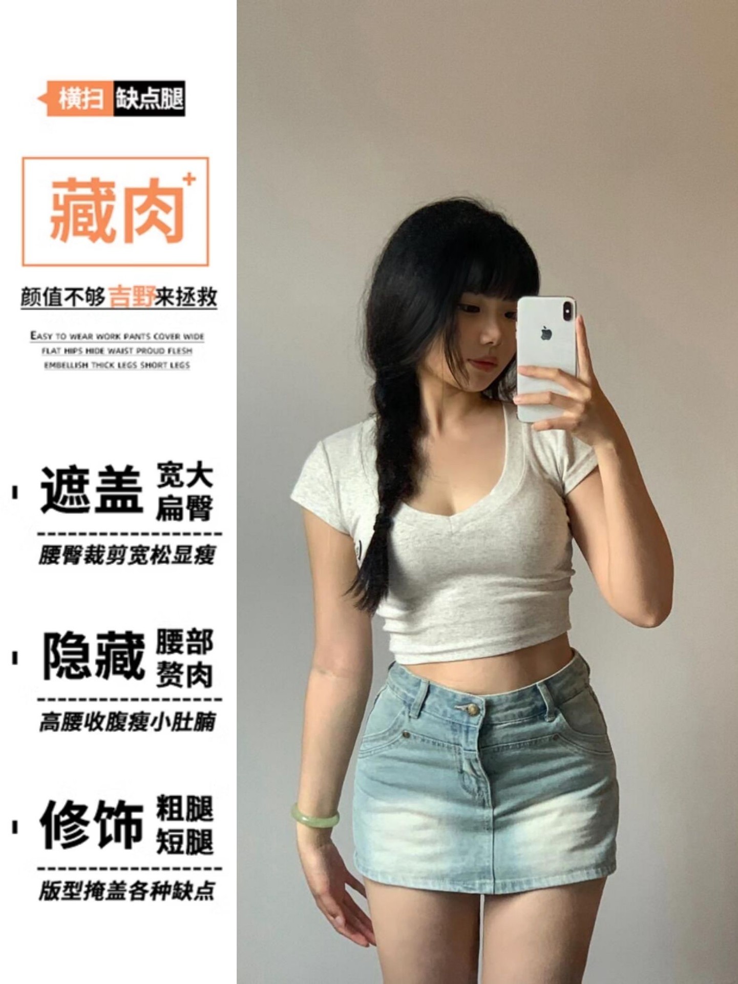 빈티지 세탁 데님 스커트 여성 여름 새로운 높은 허리 슬리밍 핫 엉덩이 짧은 치마스토어 가기
