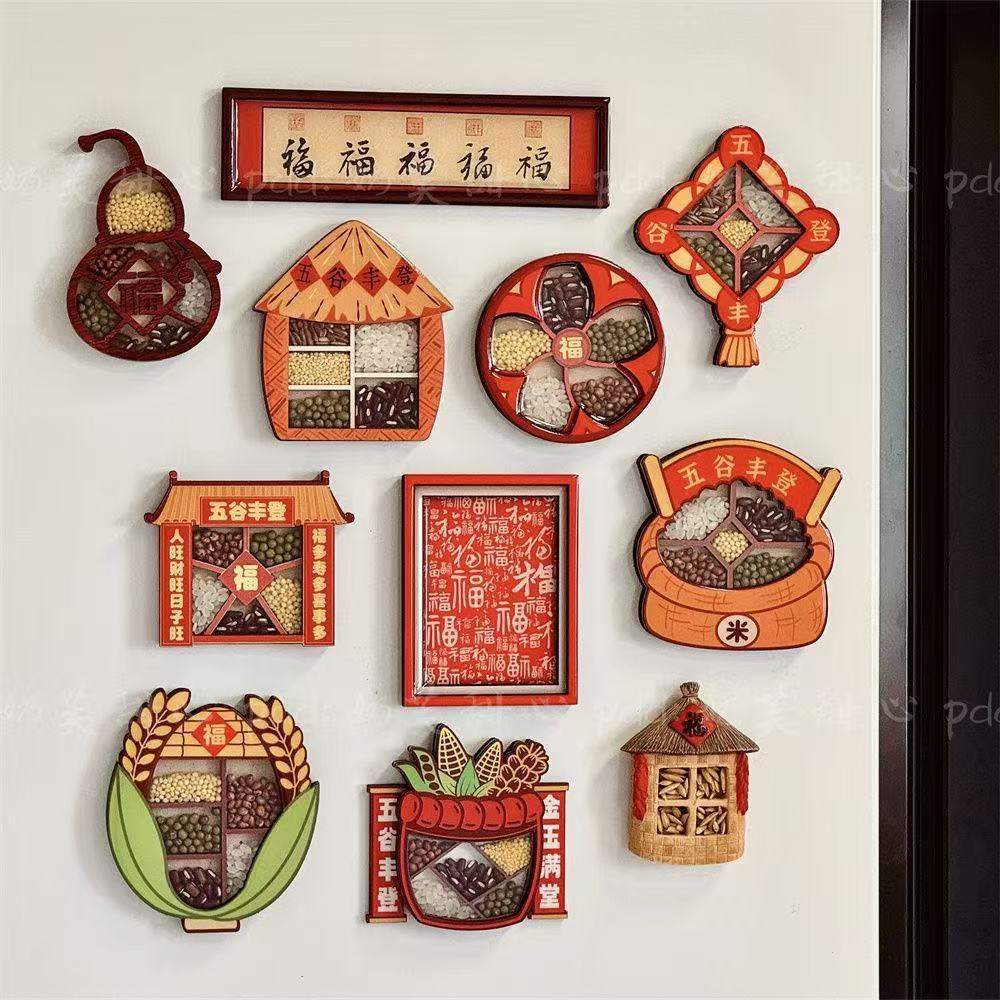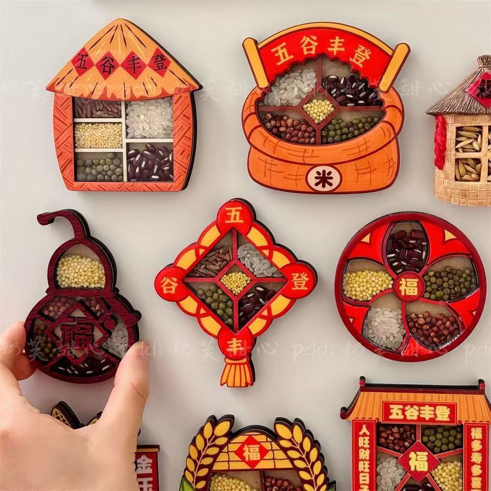 【可代发】高颜值国风创意五谷丰登磁吸迷你冰箱贴丰收福禄装饰贴