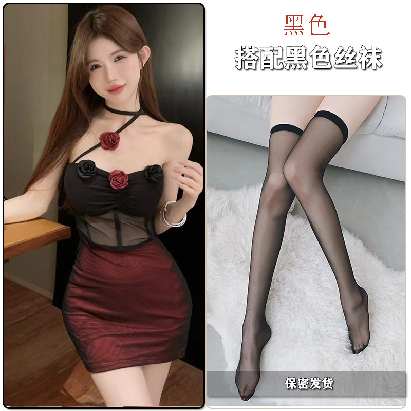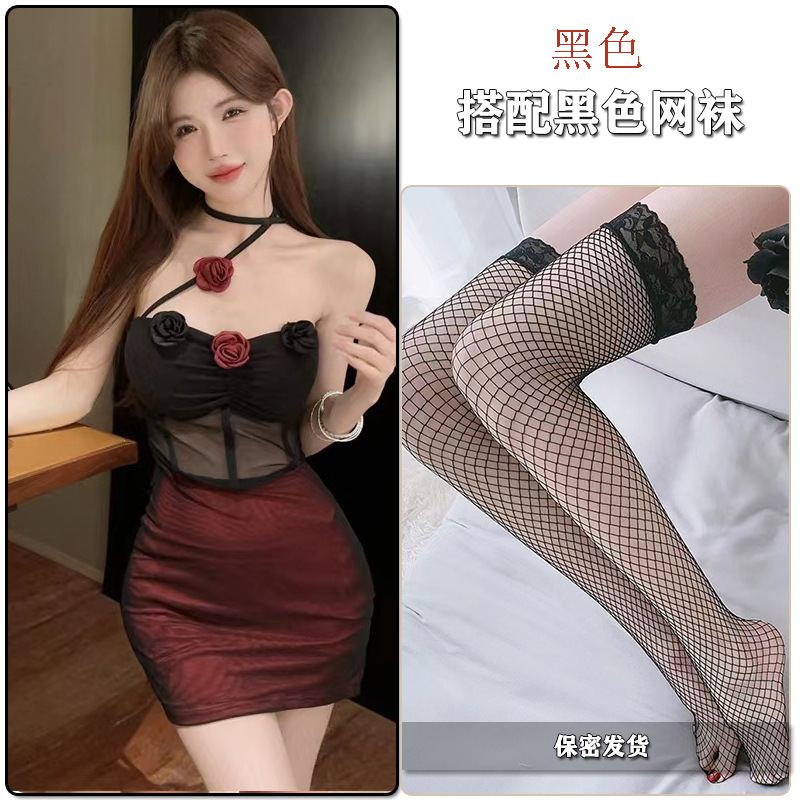섹시한 교수형 목 벨트 가슴 패드리스 원피스 매운 뜨거운 소녀 스타일 높은 허리 슬림-적합 플리츠 슬림-핏 엉덩이 잠자는 원피스