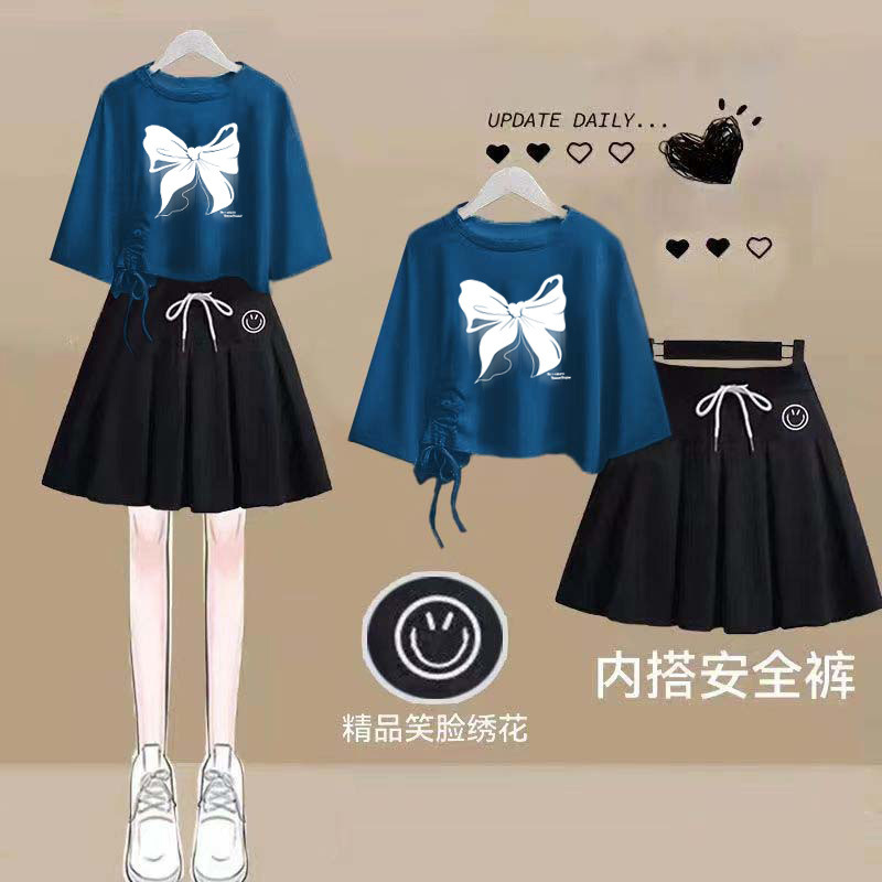 2024 년 여름 폭발 새 중학생 한국 인쇄 나비 탑 검은 치마 세트 세트스토어 가기