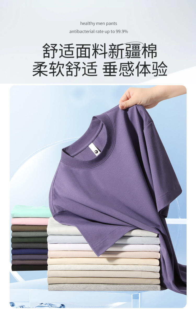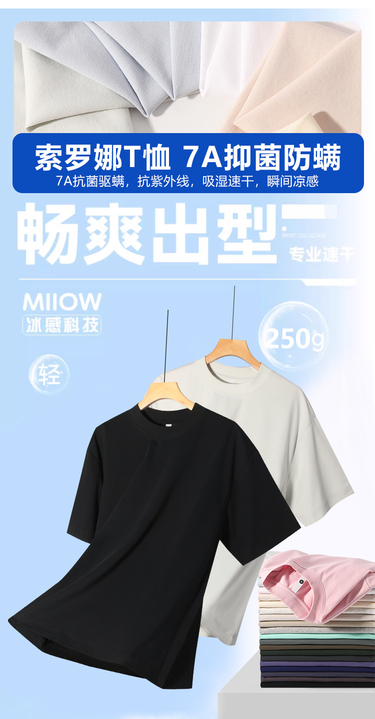 여름 250g 헤비급 아이스 실크 시원한 반팔 티셔츠 남성용 솔로나 루즈핏 라운드넥 반팔 상의 단색 기본 티셔츠스토어 가기