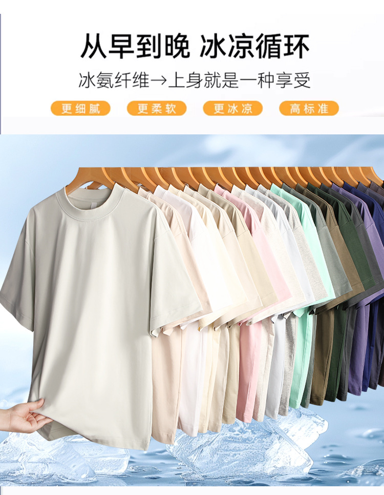 여름 250g 헤비급 아이스 실크 시원한 반팔 티셔츠 남성용 솔로나 루즈핏 라운드넥 반팔 상의 단색 기본 티셔츠
