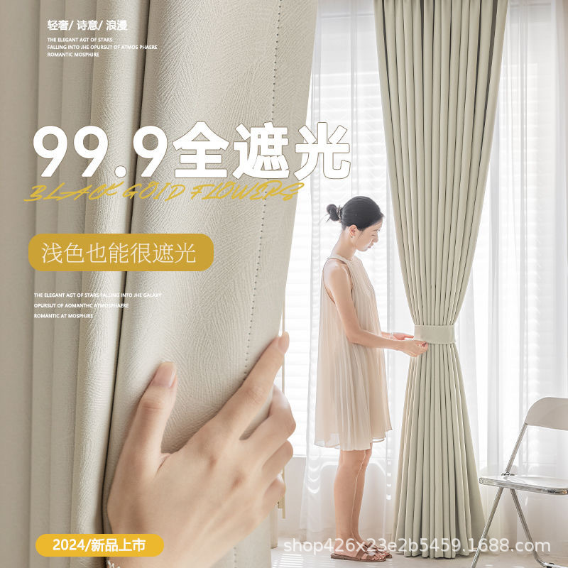 완제품 커튼 도매 완전 암막 블랙 골드 커튼 모던 심플 단열 자외선 차단 거실 침실 임대용스토어 가기