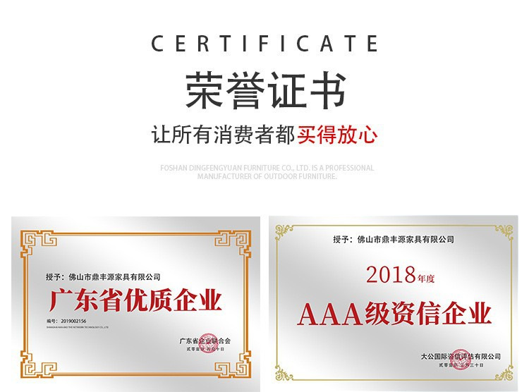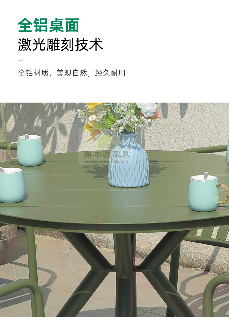佛山市鼎丰源家具有限公司是一家专业生产销售户外家具的工厂,位于“世界家具之都”广东佛山。我司主要经营产品有:编藤沙发、桌椅,塑木桌椅、铸铝桌椅、公园椅、户外雨伞等各类家具。款款新颖,富有创意,物美价廉,具完美的构思,上乘的质量和精美的外观,能为你营造一个美观舒适并富有艺术感染的理想生活空间,给你带来摩登时代的超凡享受,给你带来富有诗意的绝美世界。 我们能够为客户提供专业的OEM.ODM服务,能够根据客户需求生产各种类型的户外家具,我司有多人的专业服务团队,为客户提供优质的服务!竭诚欢迎新老客户来电来图咨询,谢谢!