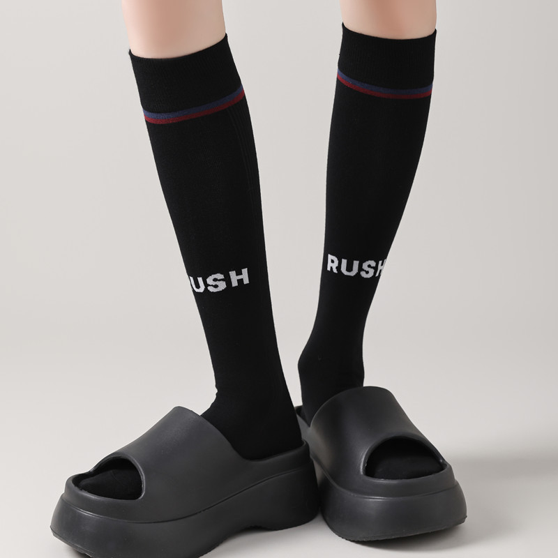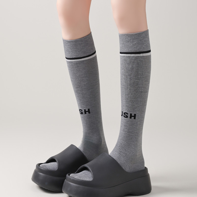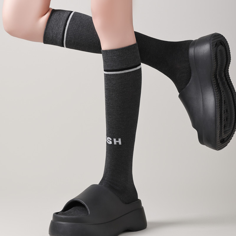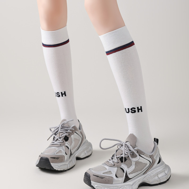 긴 양말 유럽산 Ins 트렌디 브랜드 레터 송아지 양말 여자 올 매치 슬리밍 스트라이프 중간 높이 무릎 길이 코일 양말