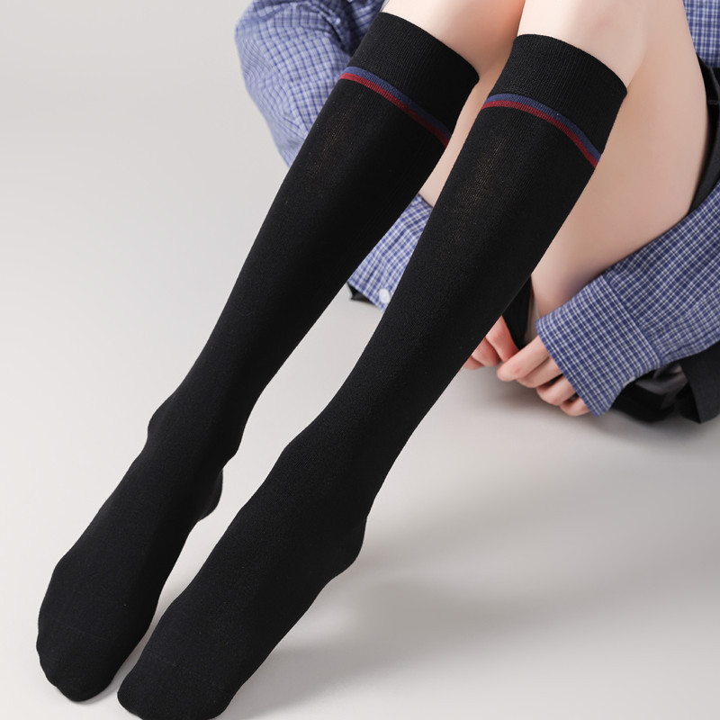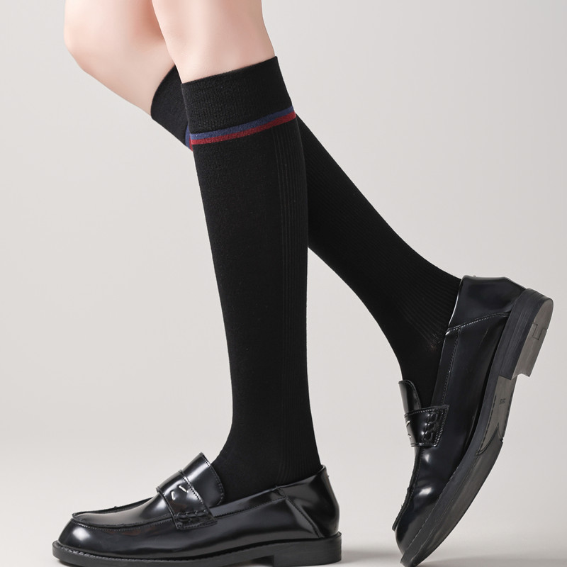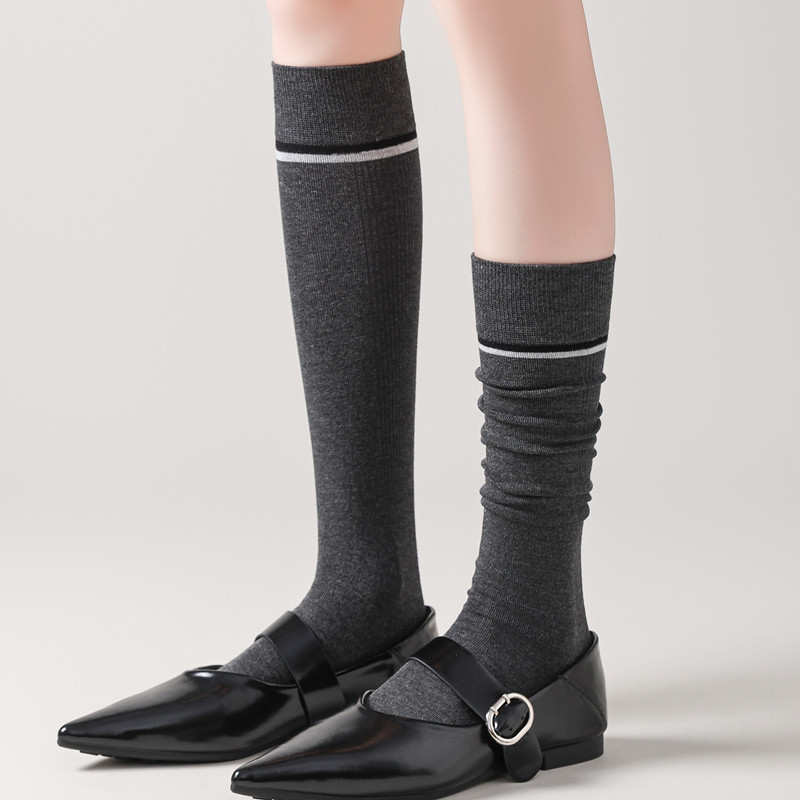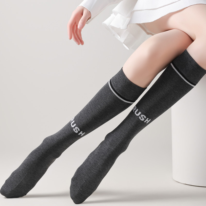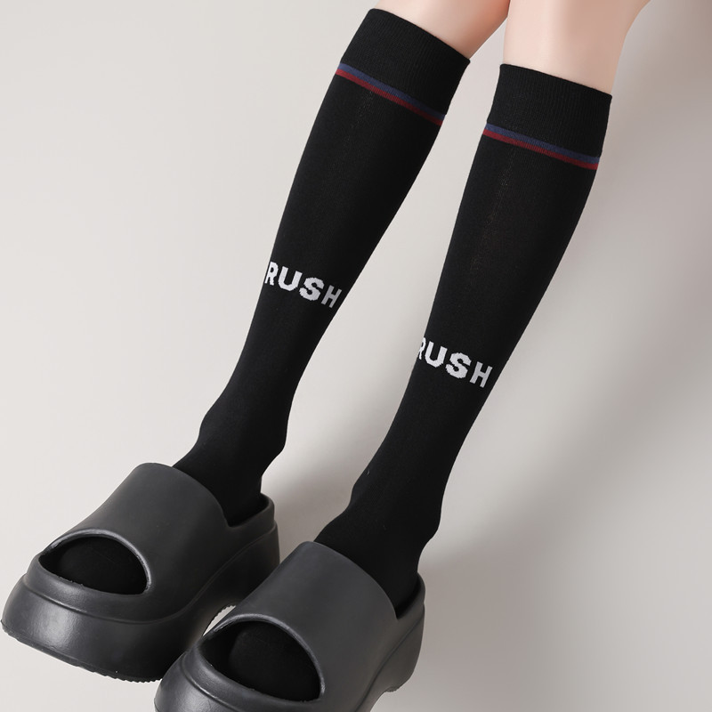 긴 양말 유럽산 Ins 트렌디 브랜드 레터 송아지 양말 여자 올 매치 슬리밍 스트라이프 중간 높이 무릎 길이 코일 양말스토어 가기