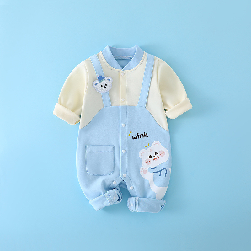 아기의 점프 수트 봄과 가을 곰 스트랩 면화 아기의 가을 옷 만화 슈퍼 귀여운 하하 의상 등반 옷스토어 가기