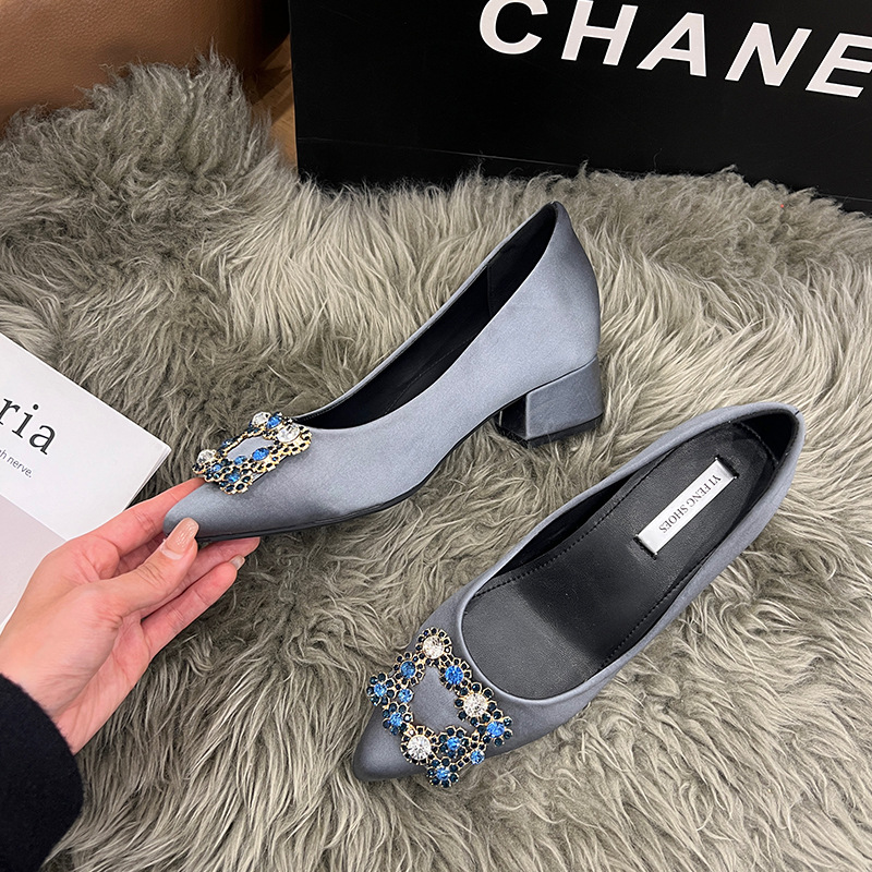 증가 된 7cm 기질 눈송이 다이아몬드 스퀘어 버클 뾰족한 새틴 프랑스 올 매치 얕은 입 싱글 신발 웨딩 슈즈 온도 통근 신발스토어 가기