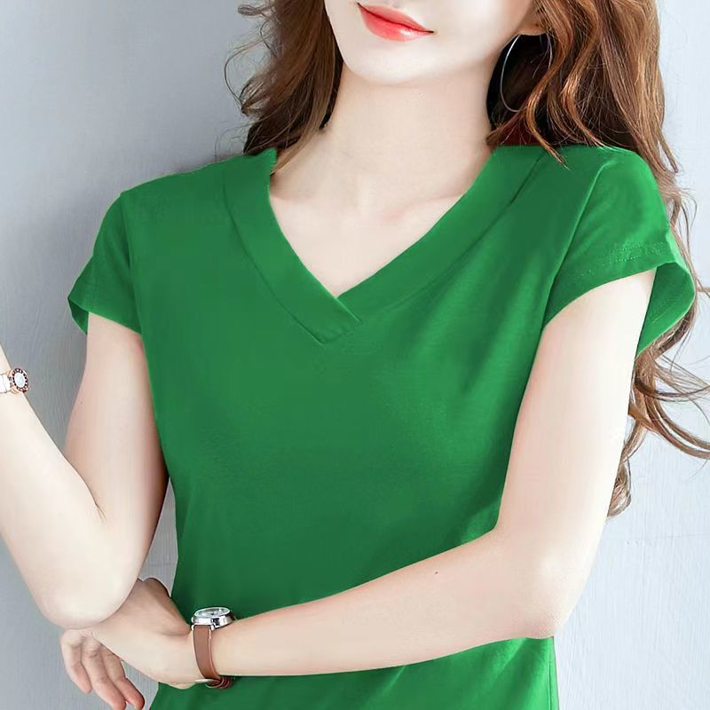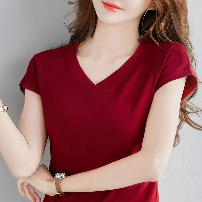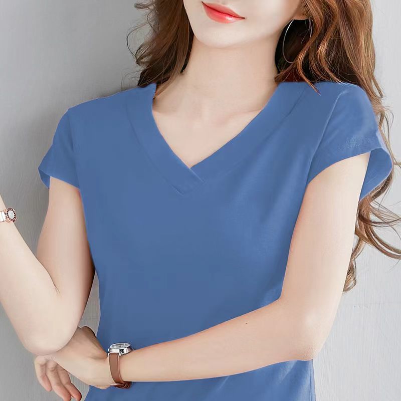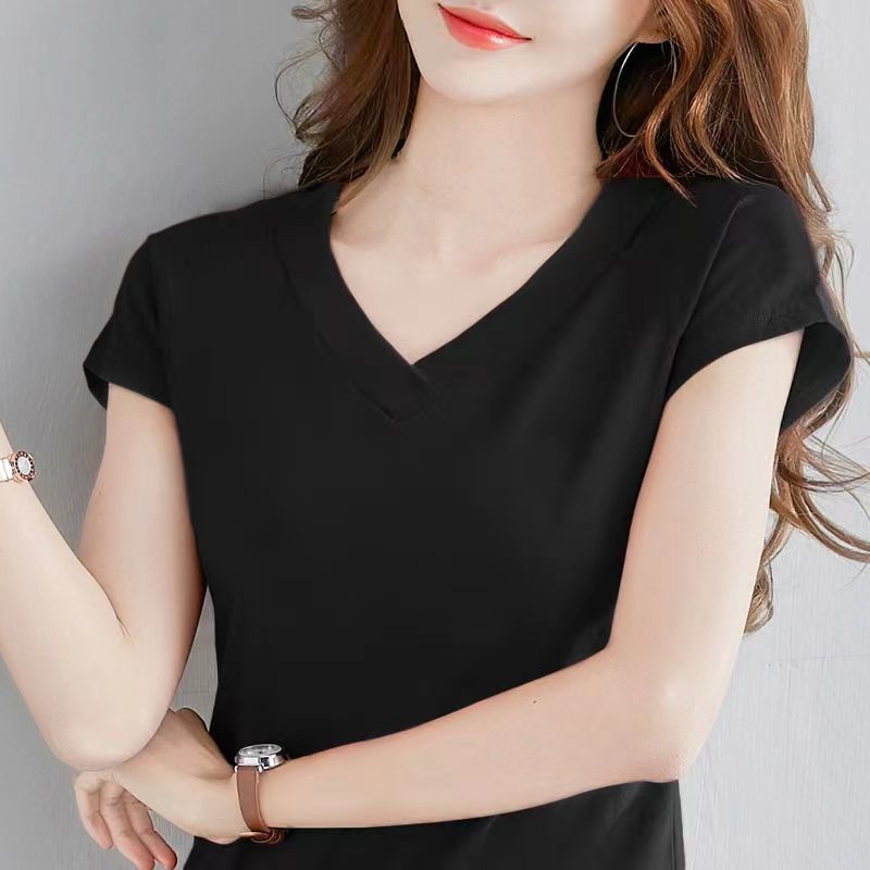 짧은 소매 셔츠 여성용 플러스 사이즈 슬림 핏 새 여름 옷 큰 칼라 반소매 치킨 하트 칼라 탑 옷 티셔츠 베이스 트렌디스토어 가기
