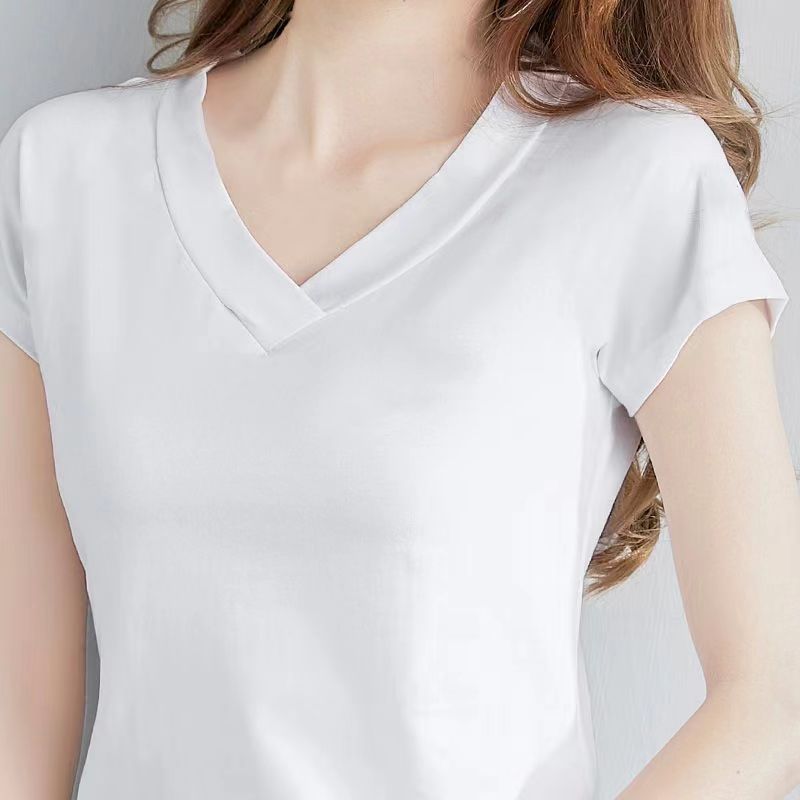 짧은 소매 셔츠 여성용 플러스 사이즈 슬림 핏 새 여름 옷 큰 칼라 반소매 치킨 하트 칼라 탑 옷 티셔츠 베이스 트렌디