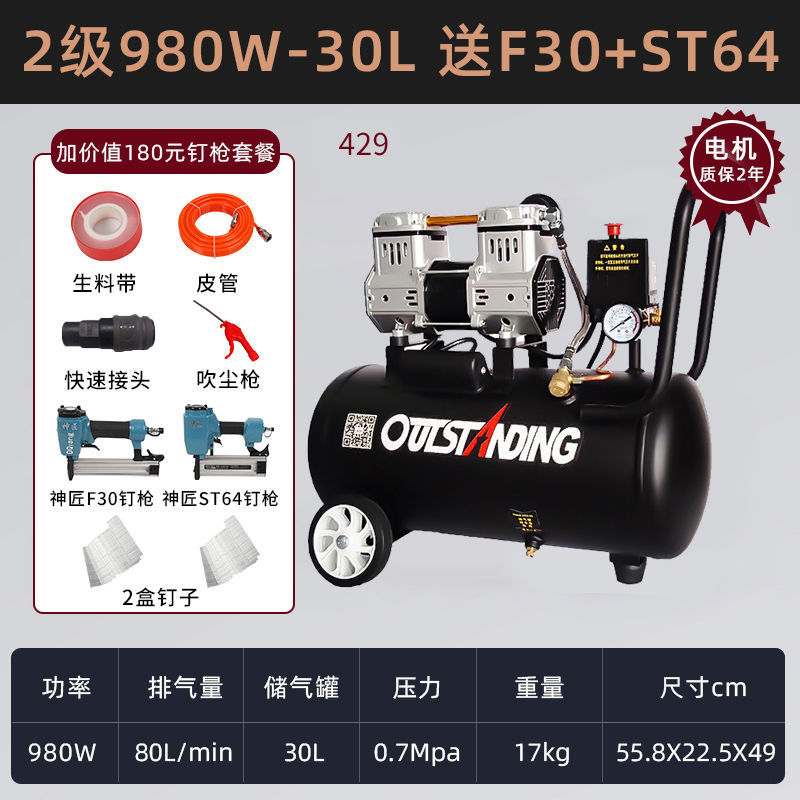 Otus 공기 압축기 작은 공기 펌프 목공 페인트 장식 고압 증기 220V 음소거 오일 프리 압축기스토어 가기