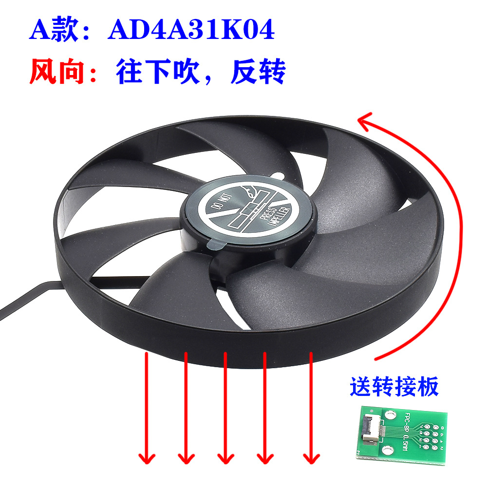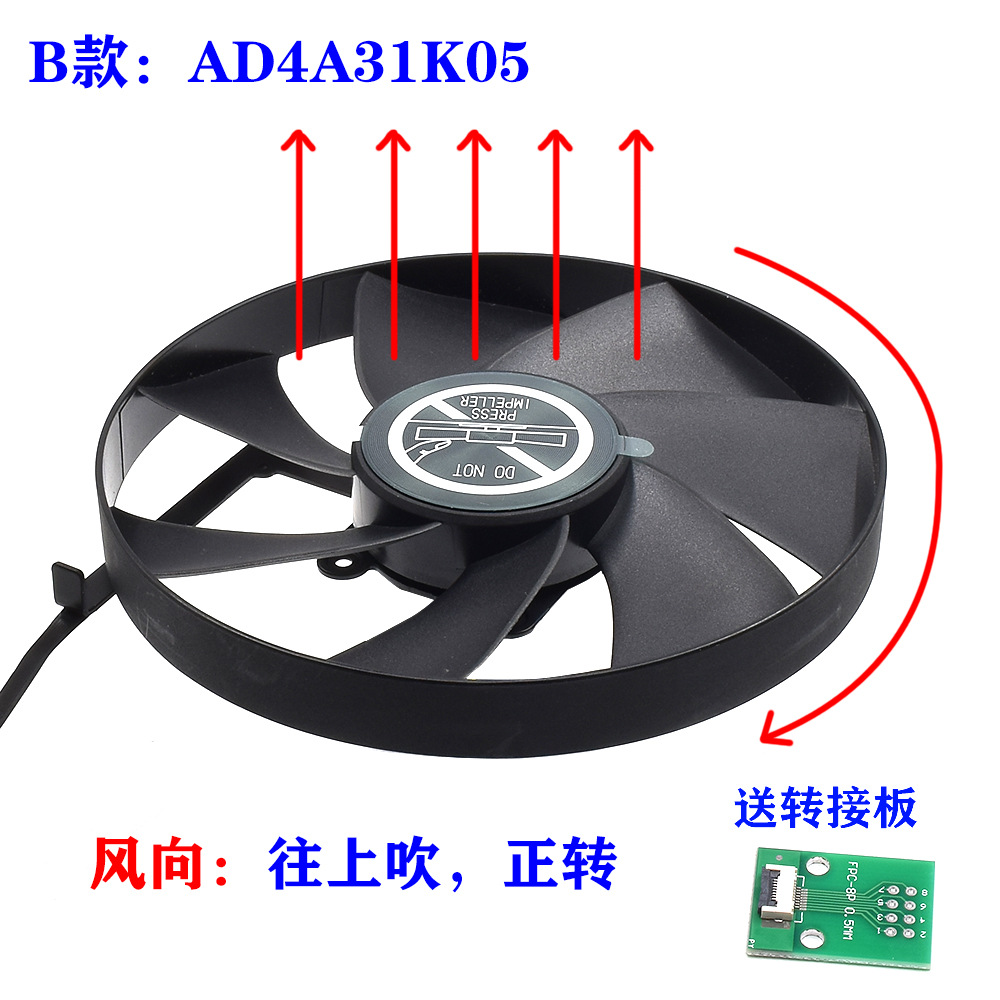 风机分两款,一款型号为AD4A31K04,风向往下吹,反转(逆时针);另一款型号为