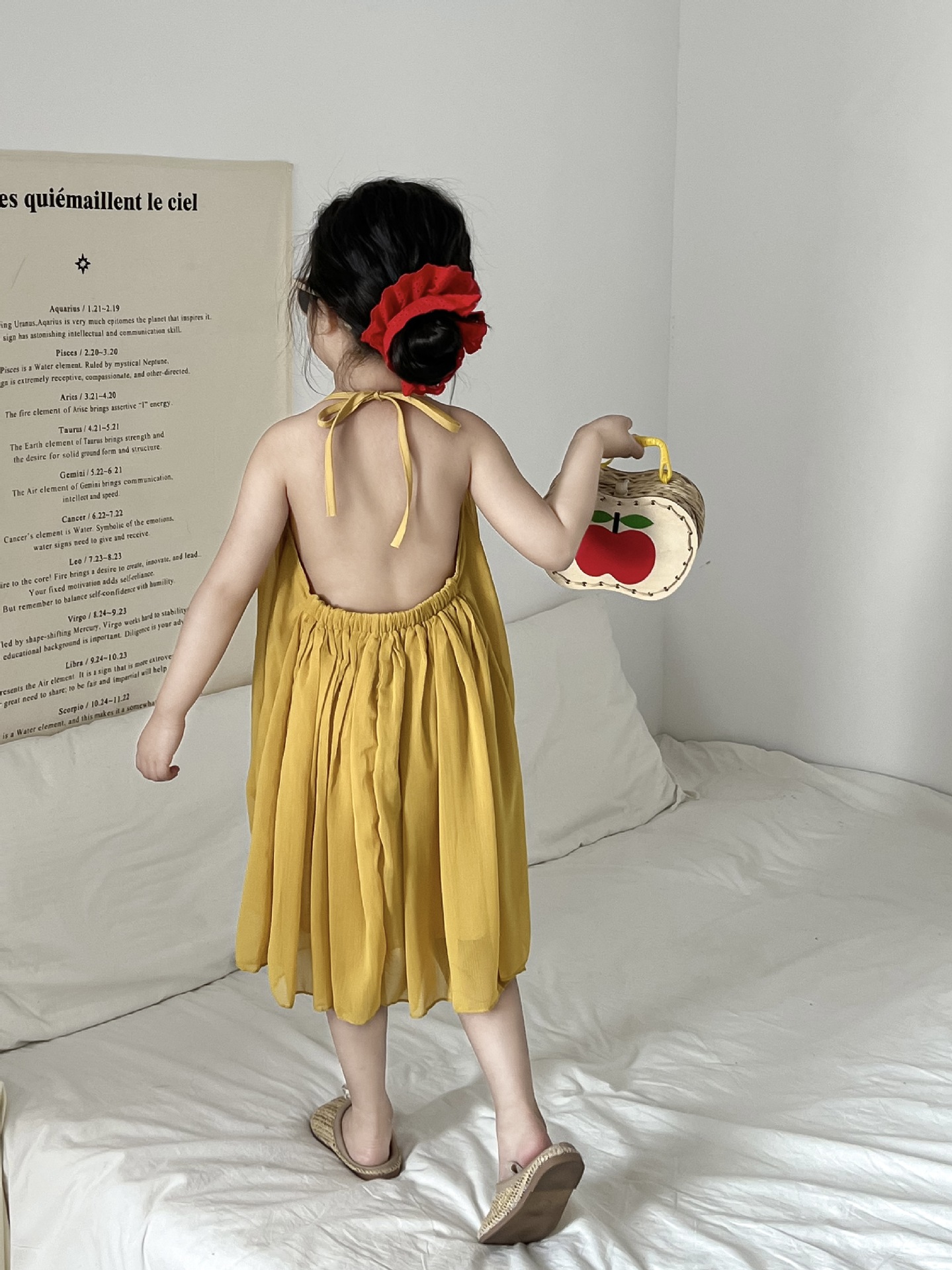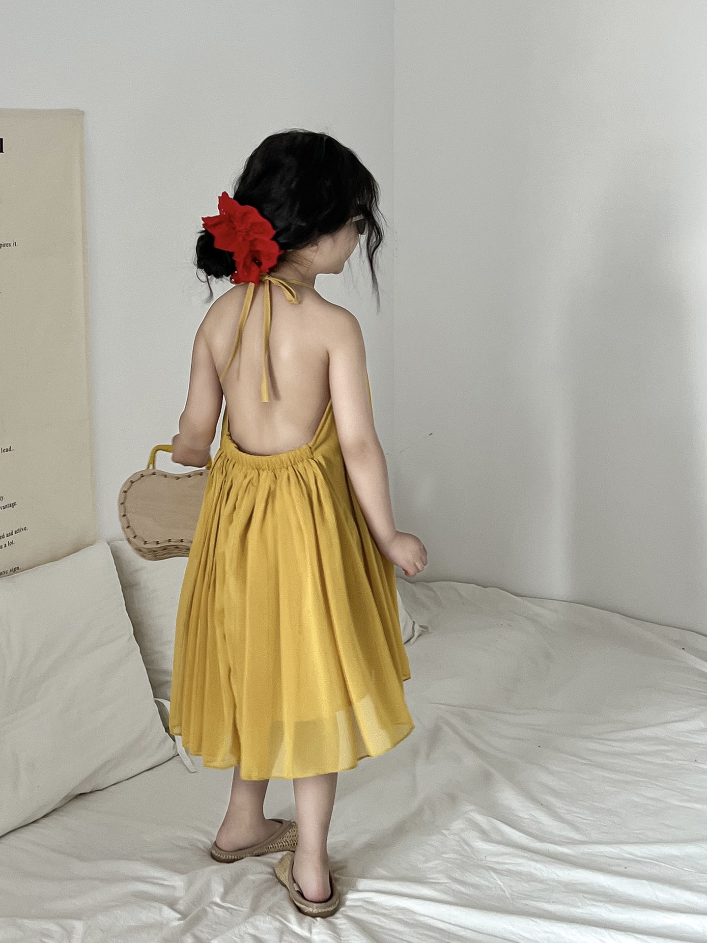소녀의 여름 우아한 요정 노란색 홀터 배경없는 원피스 분위기 느슨한 해변 해변 슬립 스커트